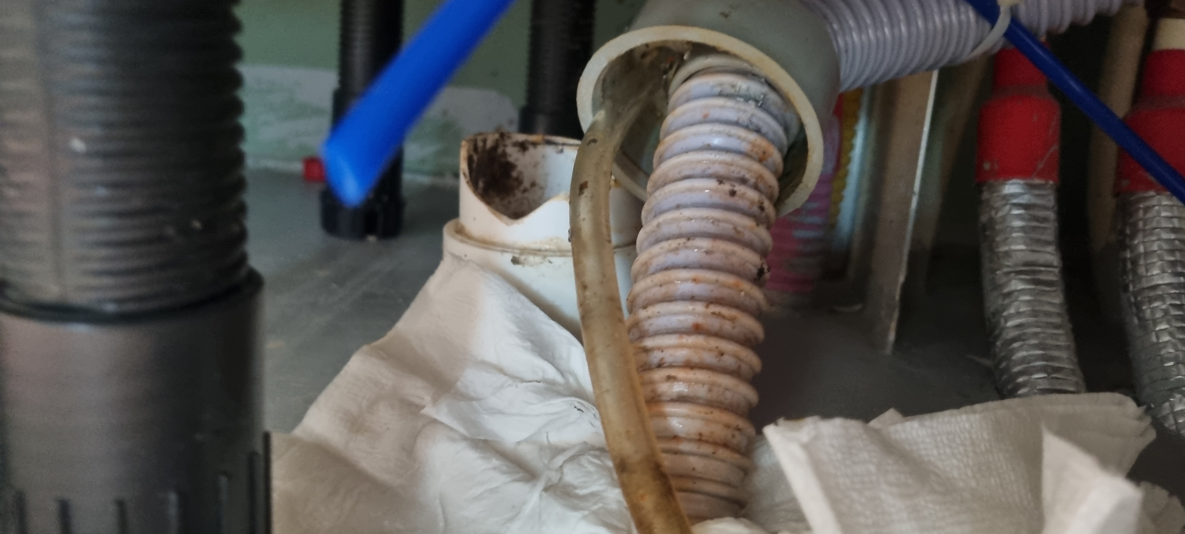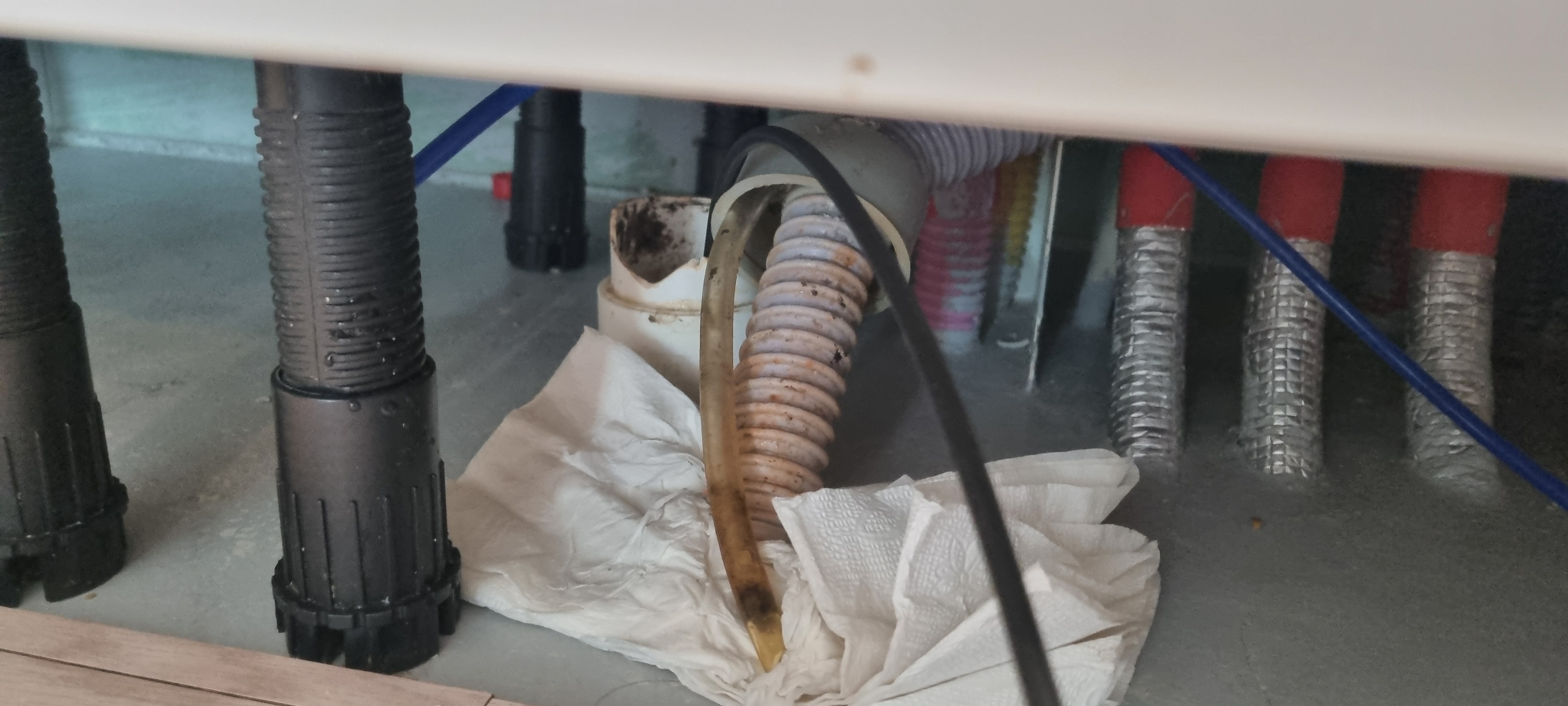역시나 물이 차있고 기름으로 꽈악 막혀있는 상황이네요.