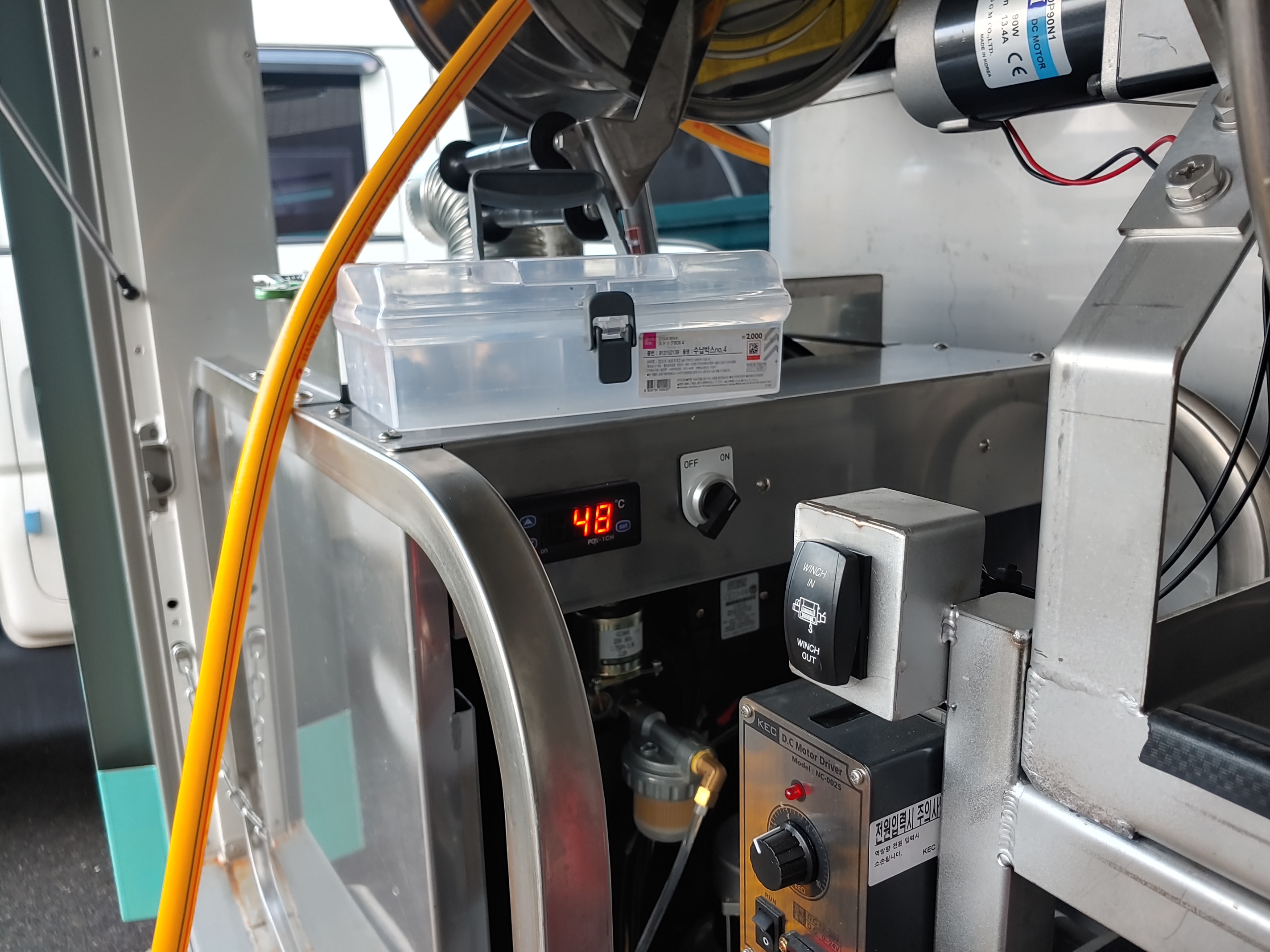 기름슬러지가 너무 많아 온수보일러를 가동하여 뜨거운 물로 하수구배관 세척을 진행합니다.