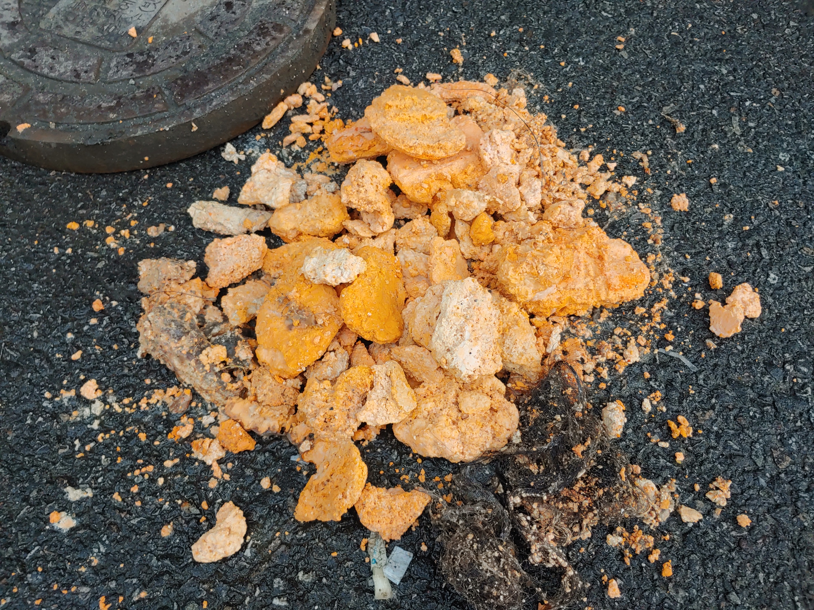 뜨거운 물에 녹아서 내려간 기름슬러지 양도 상당했는데 건져낸 기름덩어리가 이렇게도 많습니다.