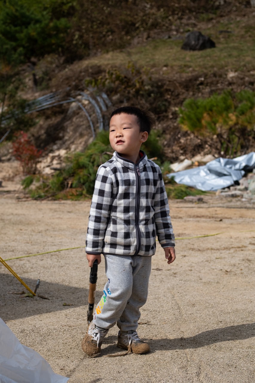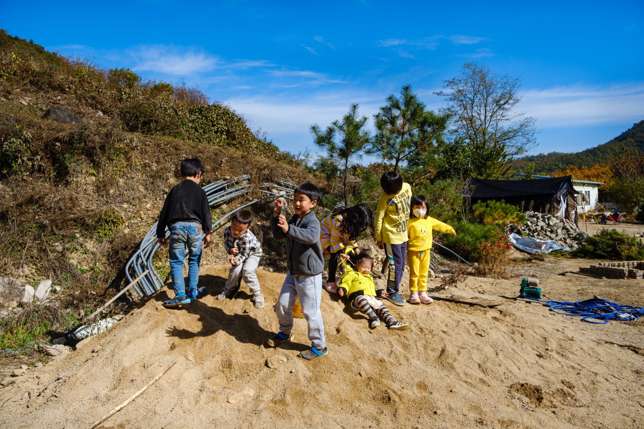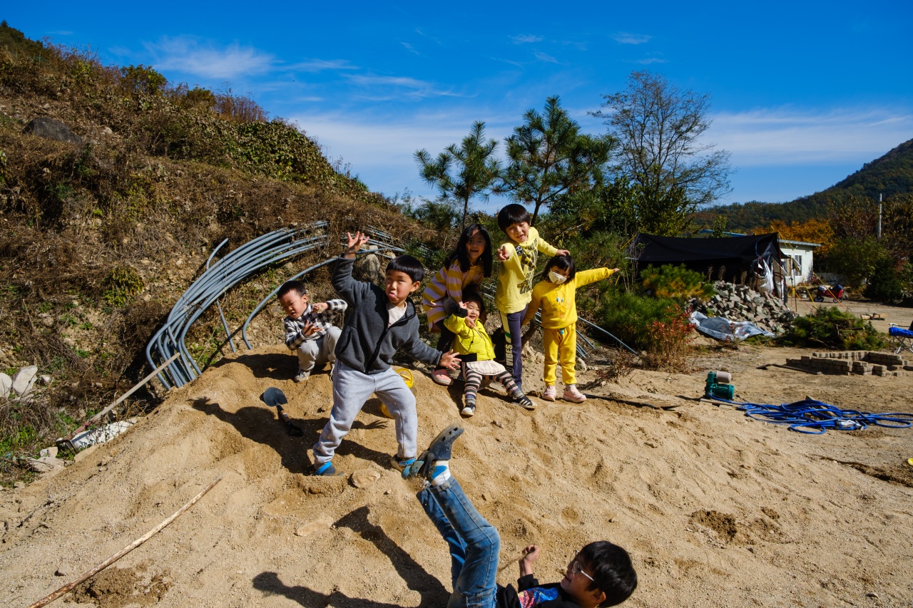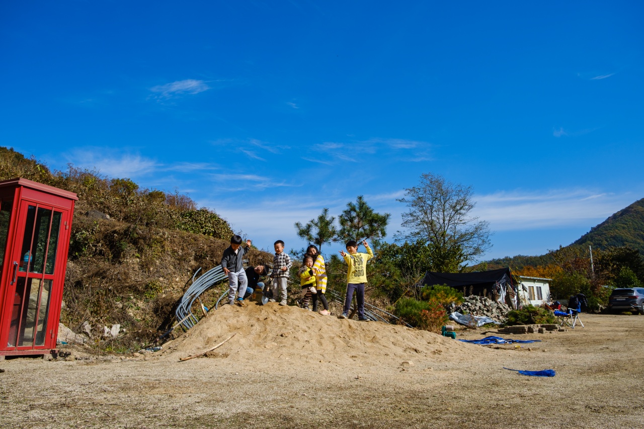 스님께서 뭔가 캠핑장으로서의 모습을 갖추기 위해 작업한 흔적들이 많이 있었는데요. 이렇게 모아놓은 모래더미가 아이들에겐 정말 신나는 놀이터가 될줄이야...