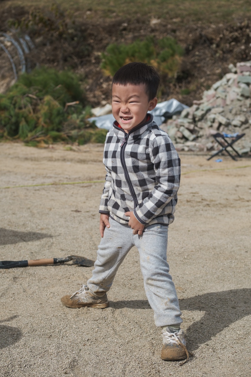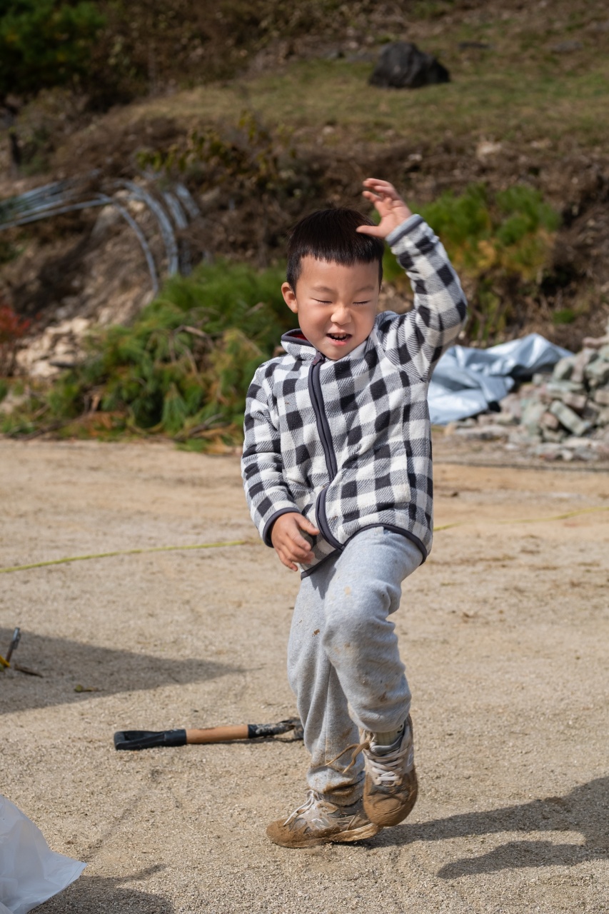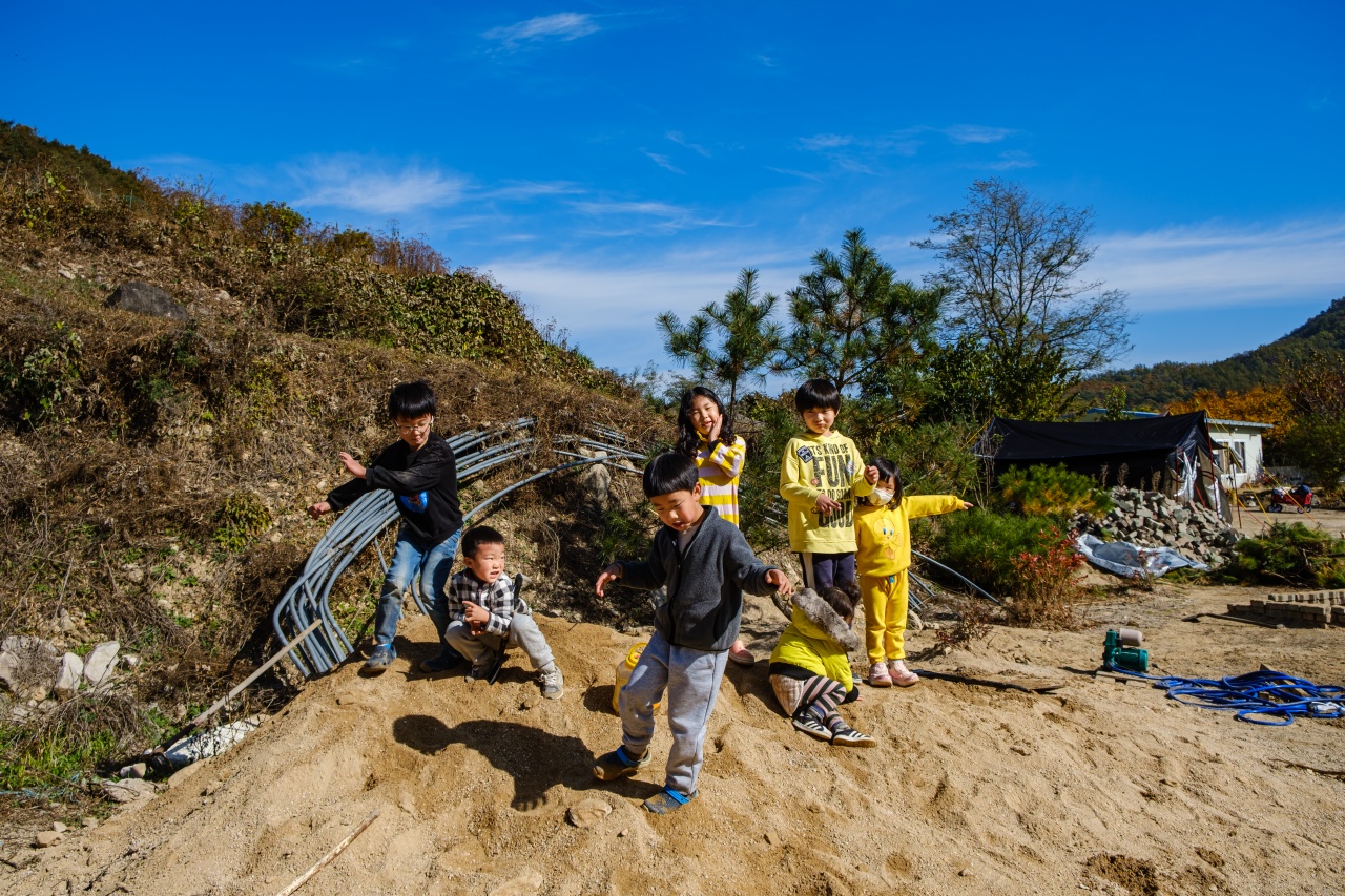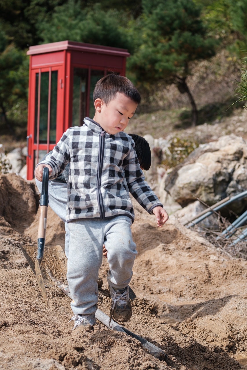 스님께서 뭔가 캠핑장으로서의 모습을 갖추기 위해 작업한 흔적들이 많이 있었는데요. 이렇게 모아놓은 모래더미가 아이들에겐 정말 신나는 놀이터가 될줄이야...