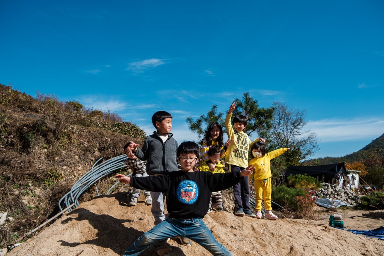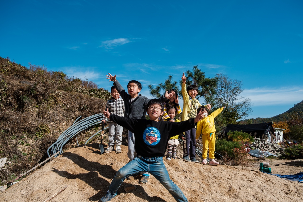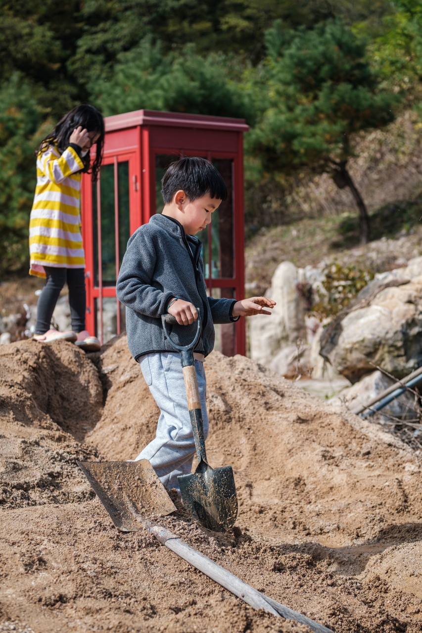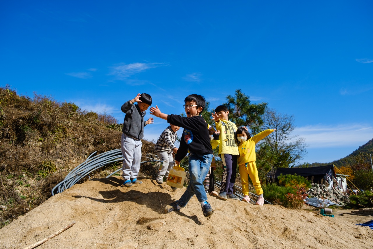 스님께서 뭔가 캠핑장으로서의 모습을 갖추기 위해 작업한 흔적들이 많이 있었는데요. 이렇게 모아놓은 모래더미가 아이들에겐 정말 신나는 놀이터가 될줄이야...