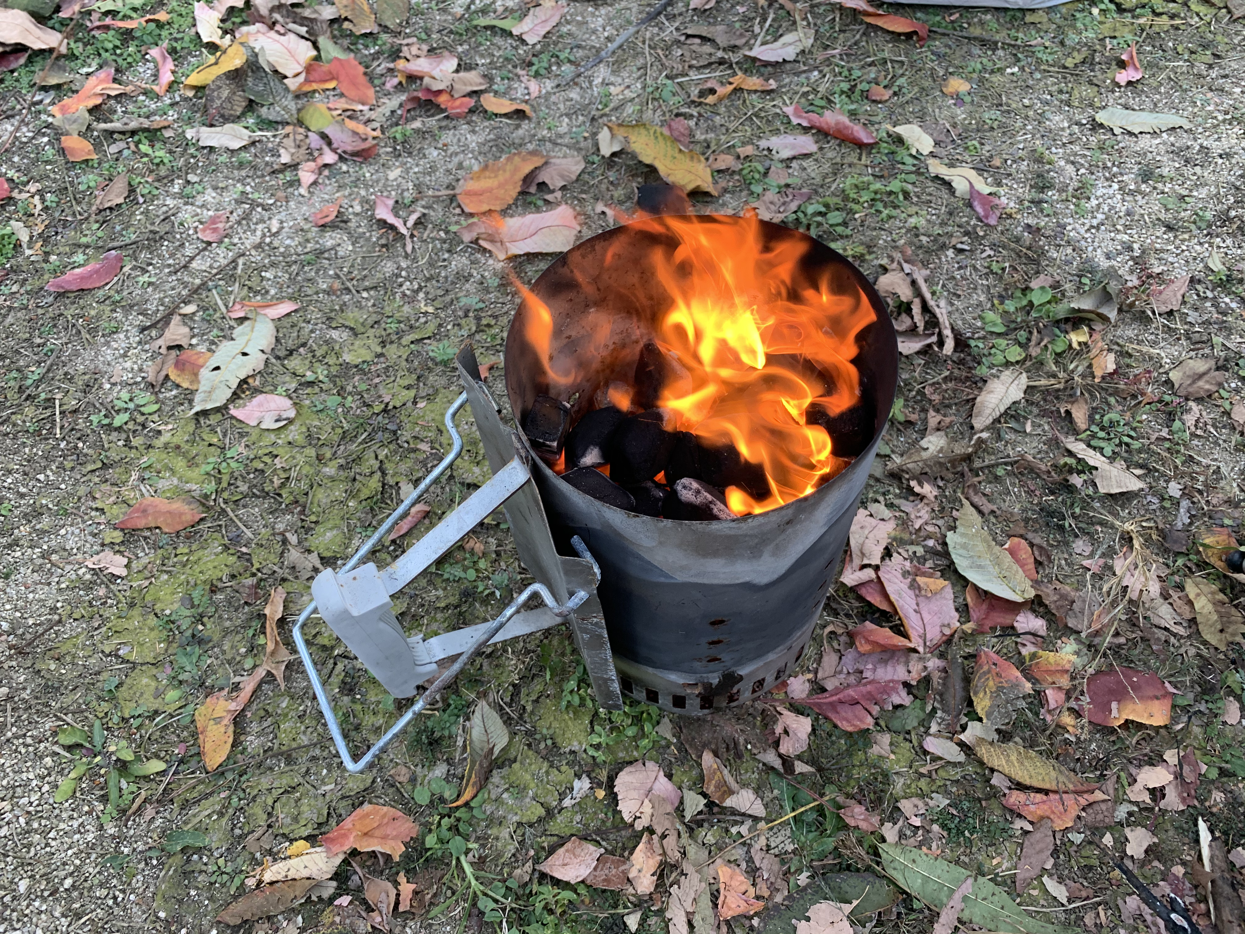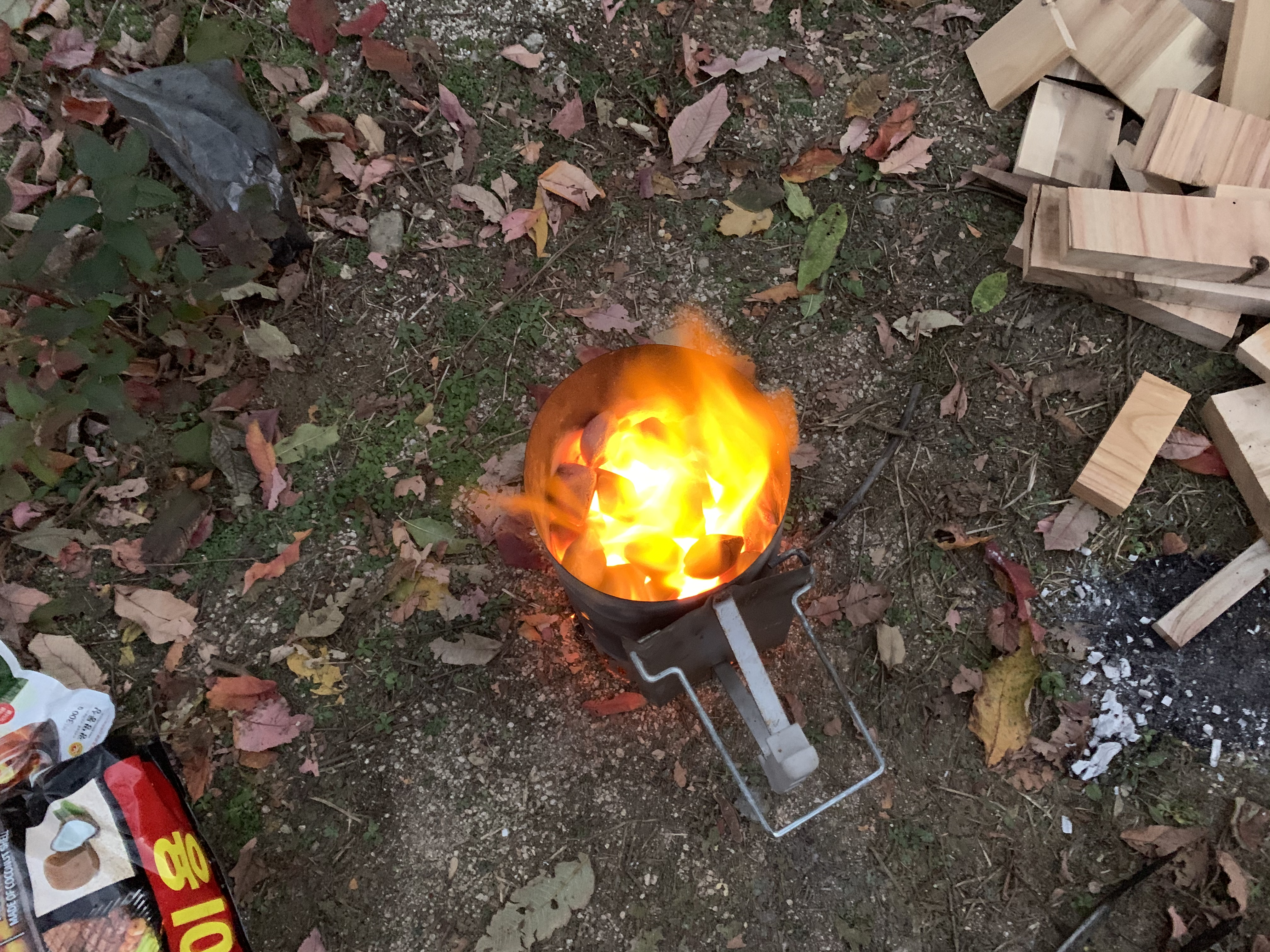 캠핑엔 고기죠~ 고기를 굽기위해 숯에 불을 붙입니다.