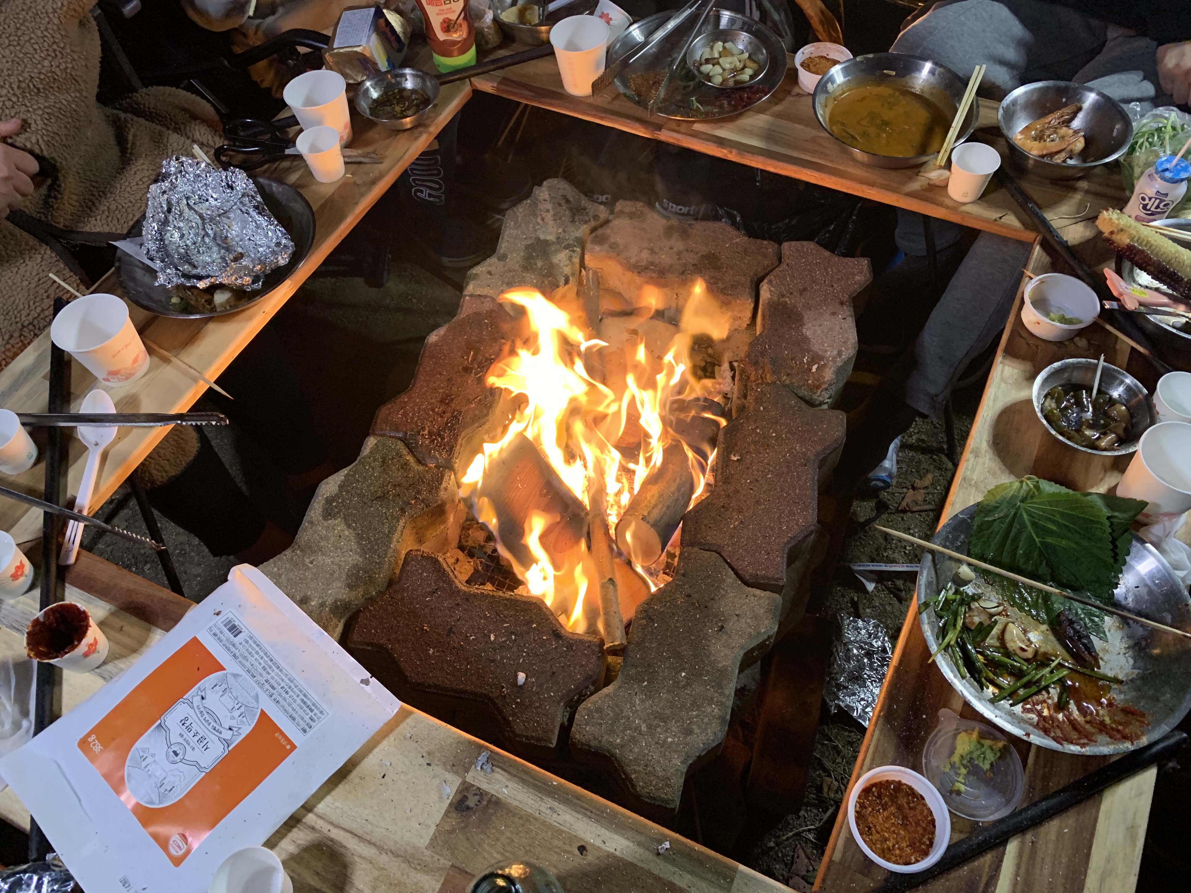 마지막으로 돌아다니는 벽돌을 주어다 만든 화로대를 보여드릴께요ㅎㅎ 스님께서 다른 캠퍼들에게도 보여주고 싶다하셔서 철수시키지 않고 돌아왔습니다.