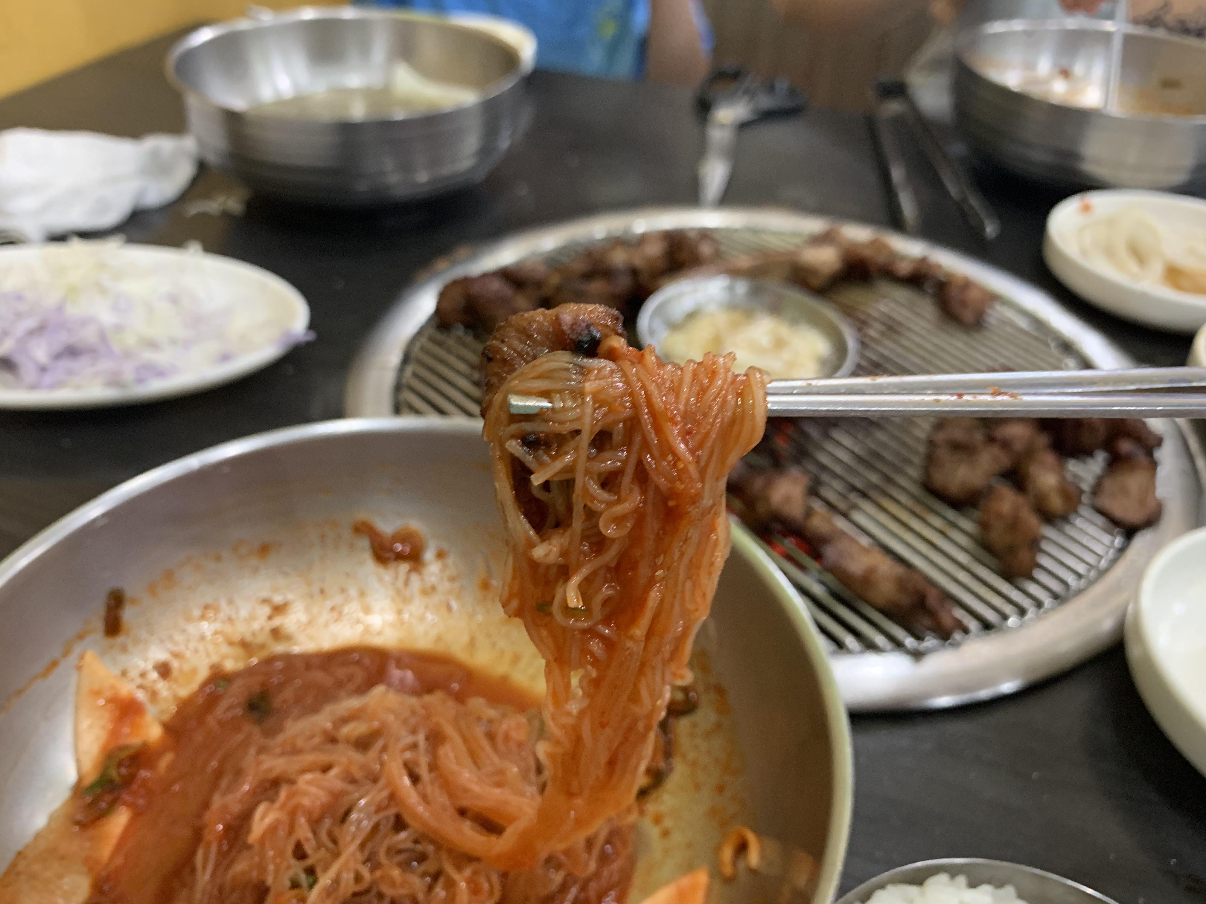 와우~ 고기가 다 구워졌습니다. 고기를 먹다보니... 냉면도 나옵니다.