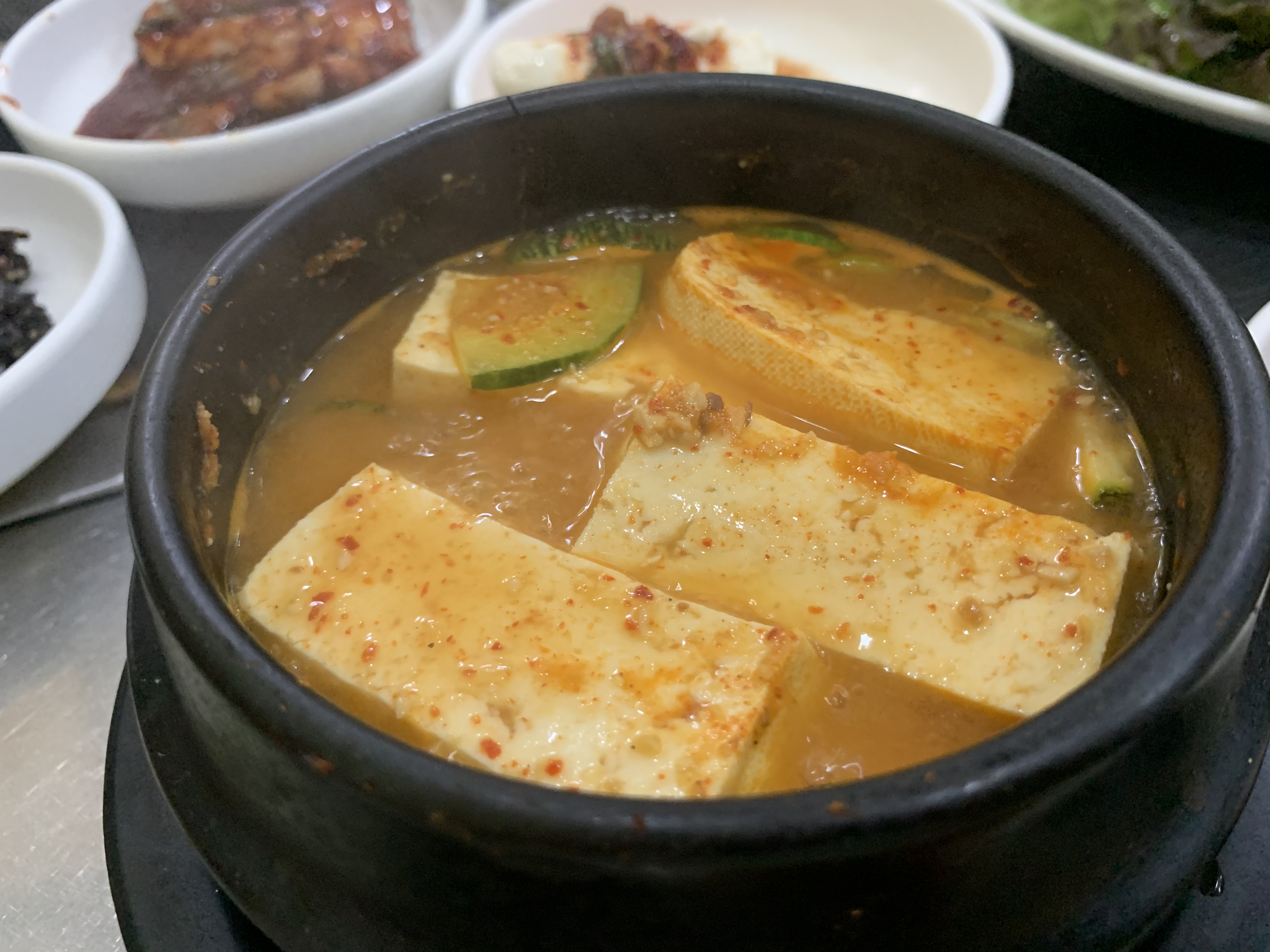 고기가 거의 익어갈때쯤 된장찌게가 나왔습니다.