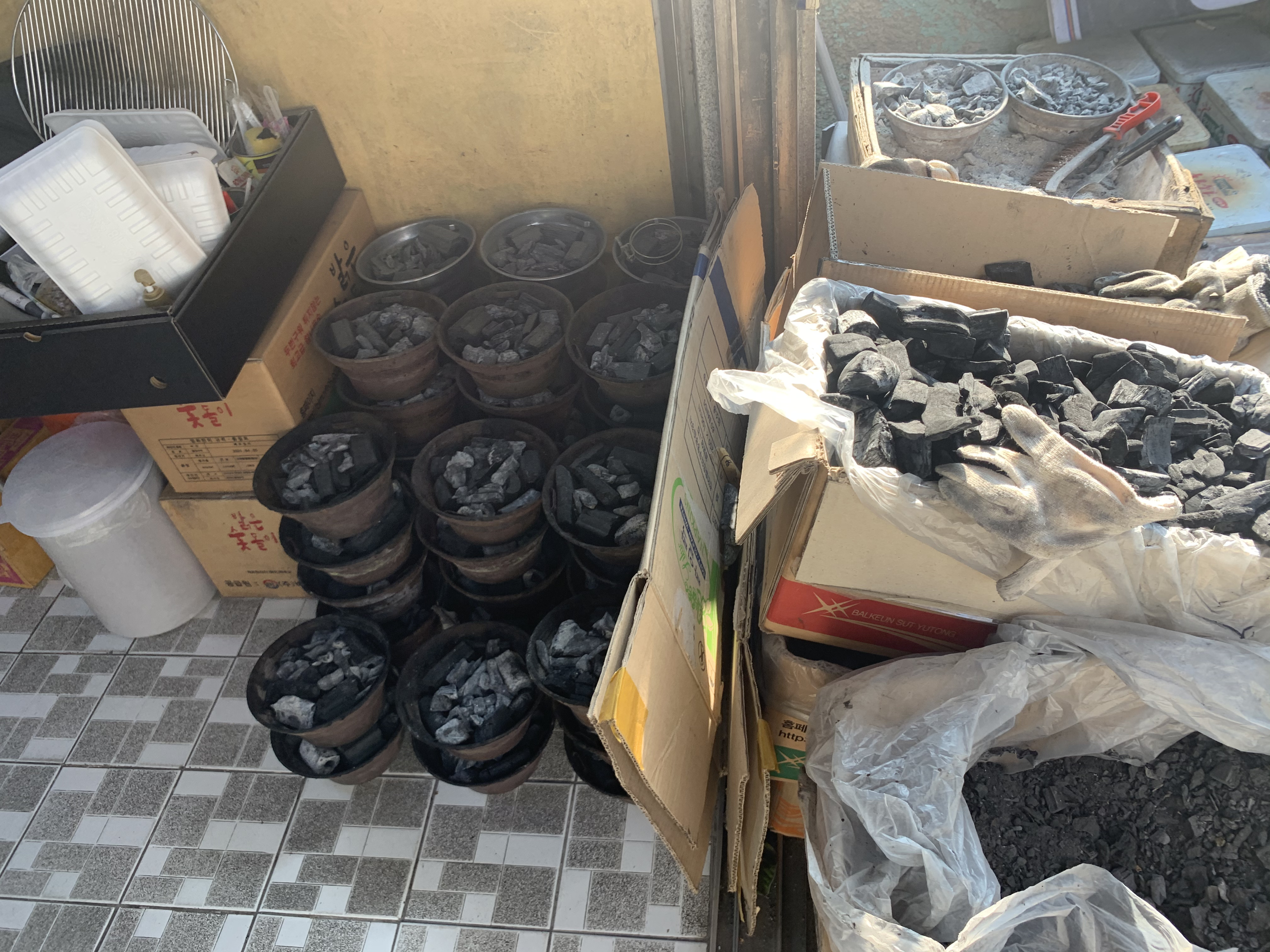 입구에는 이렇게 숯을 미리미리 준비해 놓으셨더라구요.