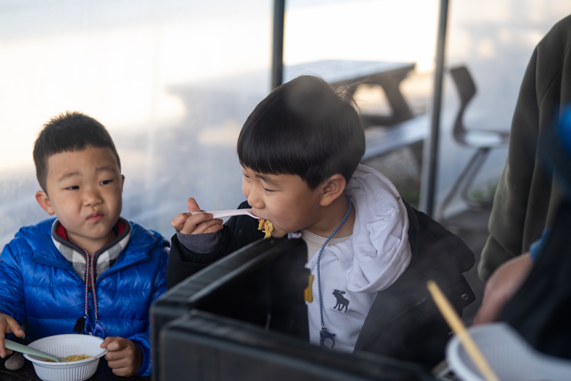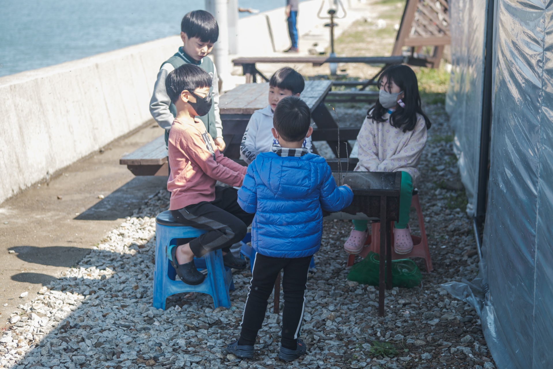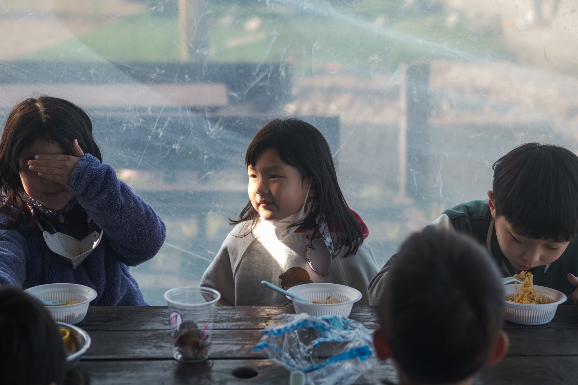 맛있게 잘먹는 아이들... 어제의 날씨는 거짓말처럼 햇살이 내리쬡니다.