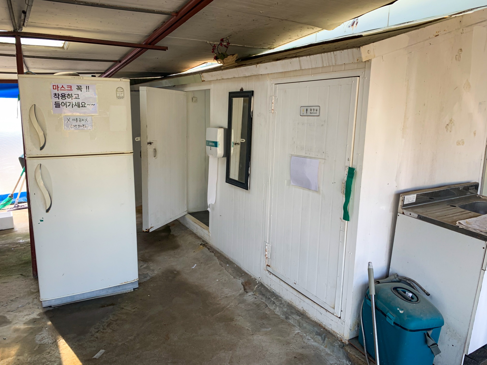 이곳은 실내인듯 실내아닌 캠핑을 온 사람들이나 피크닉을 온 사람들이 사용할 수 있는 공간입니다. 사진만봐도 관리 안되고 조금은 지져분한 모습입니다.