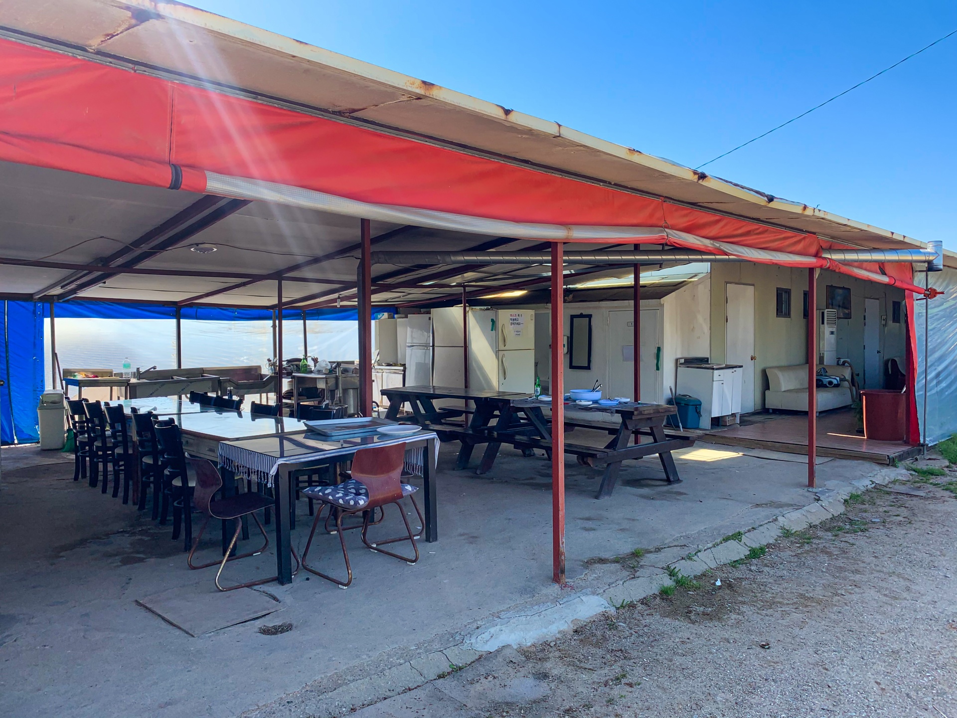 "바닷가캠프"라고 간판이 붙어있습니다. 작년까지는 네이버에서 조회가 되지 않았는데 블로그 포스팅을 하면서 확인해보니 네이버에서 바닷가캠프매점으로 검색이 되네요 ㅋ