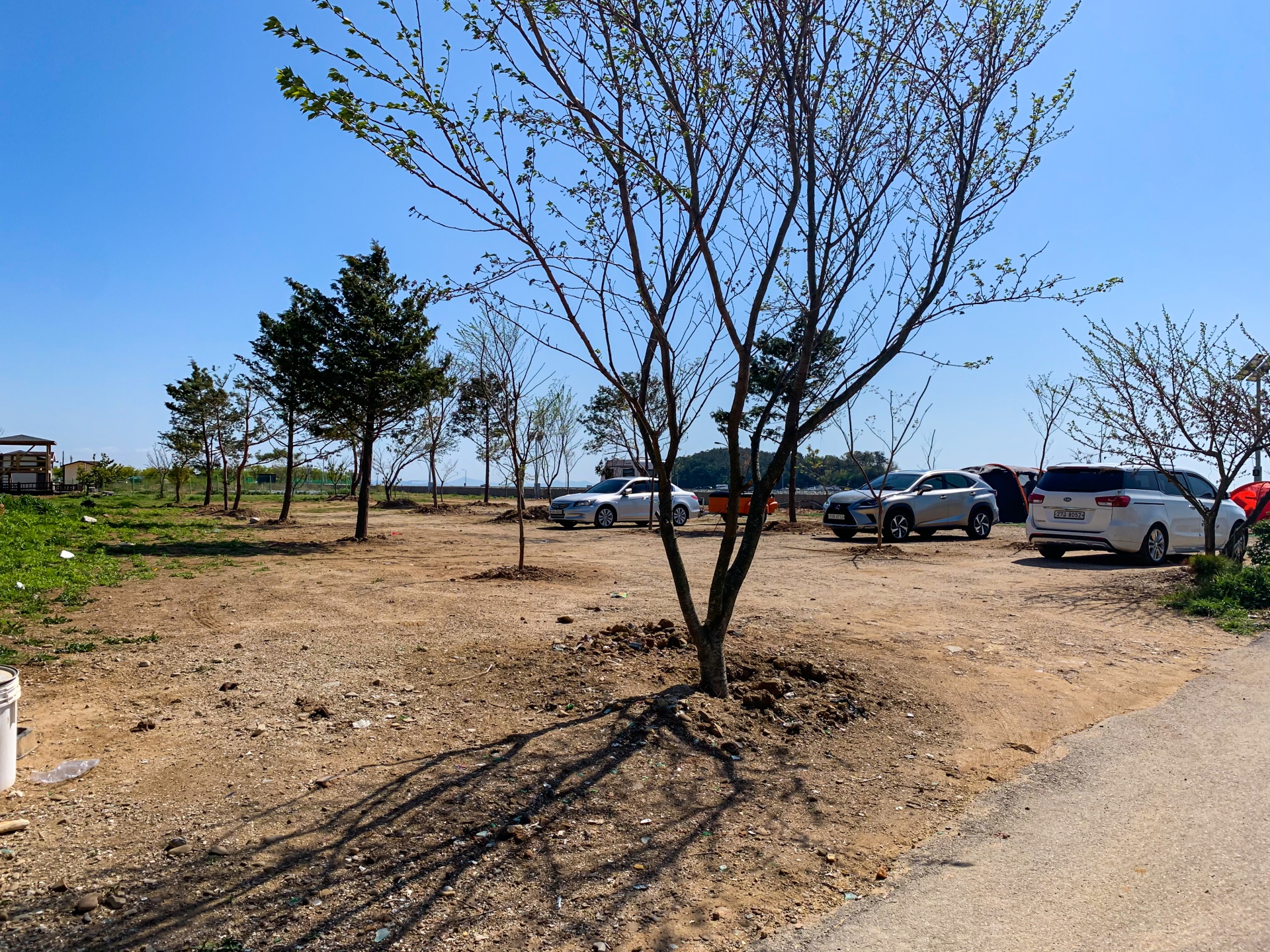바닷가캠프의 사이트 모습입니다. 사이트 경계를 위해 나무를 심어놓으셨네요.