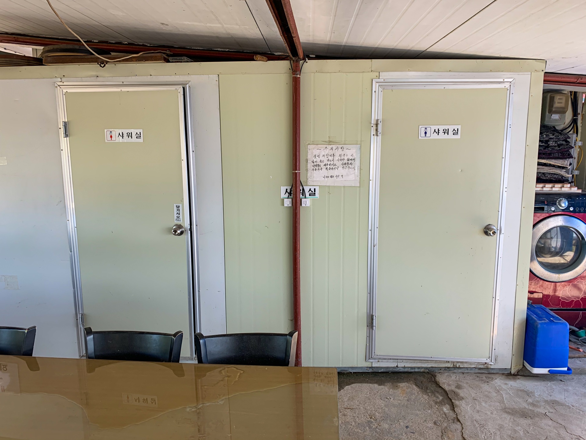 왼쪽은 여자, 오른쪽은 남자 샤워실입니다. 이곳 캠핑장은 캠핑장으로 모양을 갖춘 곳이 아니기 때문에 큰 기대는 하지 않으시는게 좋습니다.