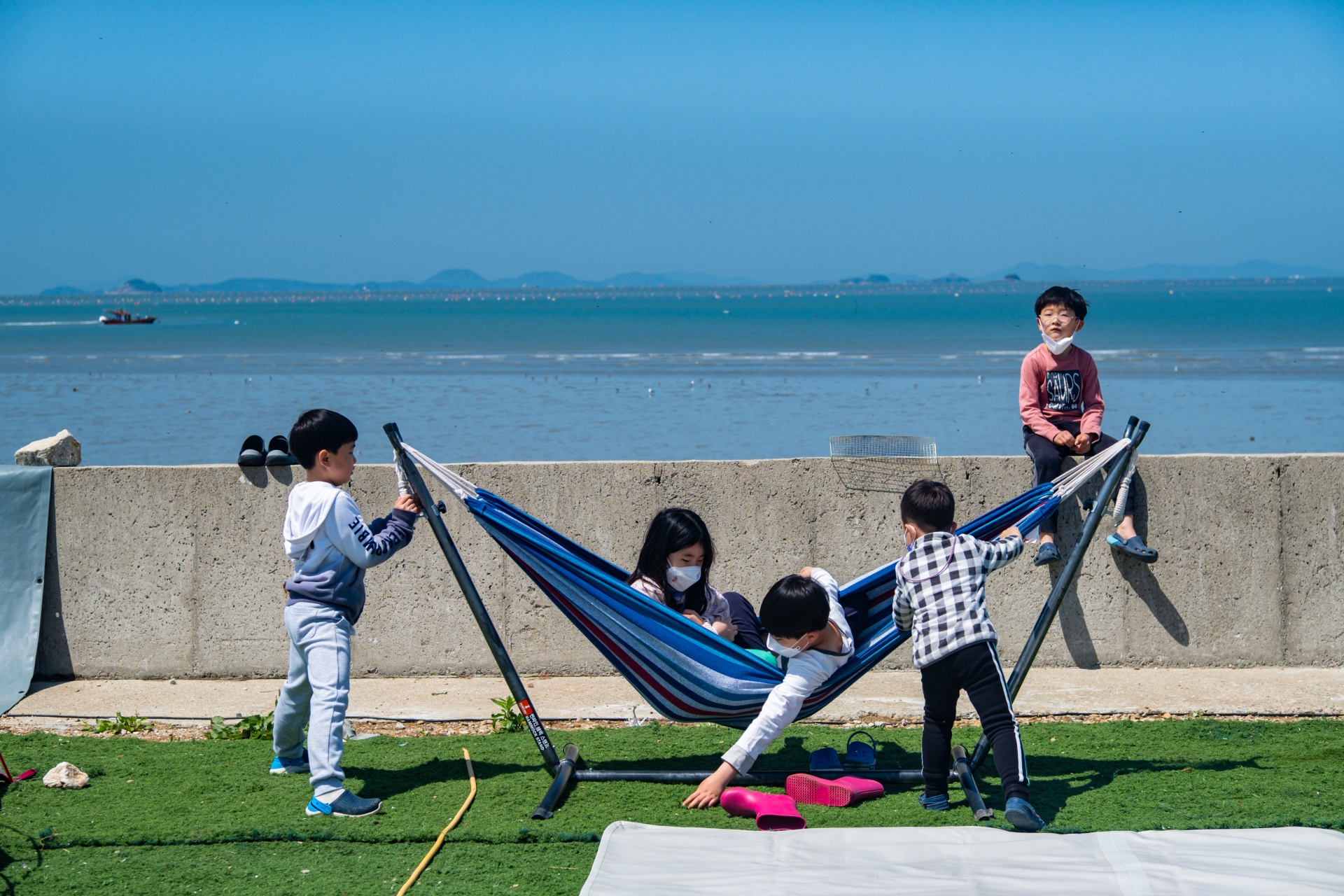 둘째 아들이 아침부터 해먹을 타고싶다고 졸라서 설치를 해줬습니다. 위 사진처럼 사이트 바로앞에서 저렇게 바다를 볼 수 있어 더욱 즐거운 캠핑을 즐길 수 있습니다.