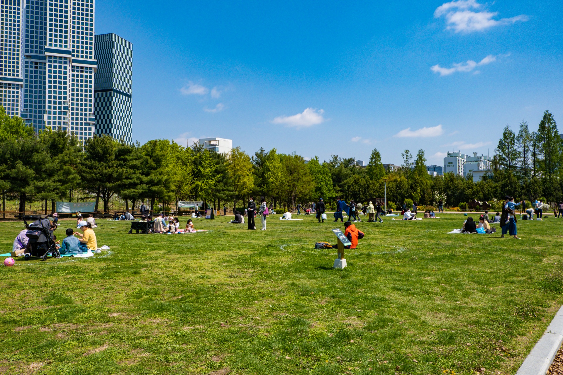 서울숲은 기억을 더듬어보니 한번도 와본적이 없었던거 같은데요. 생각보다 엄청나게 넓더라구요. 간단하게 한바퀴 쭈욱 돌아서 이곳에 자리를 잡기위해 대기를 합니다.