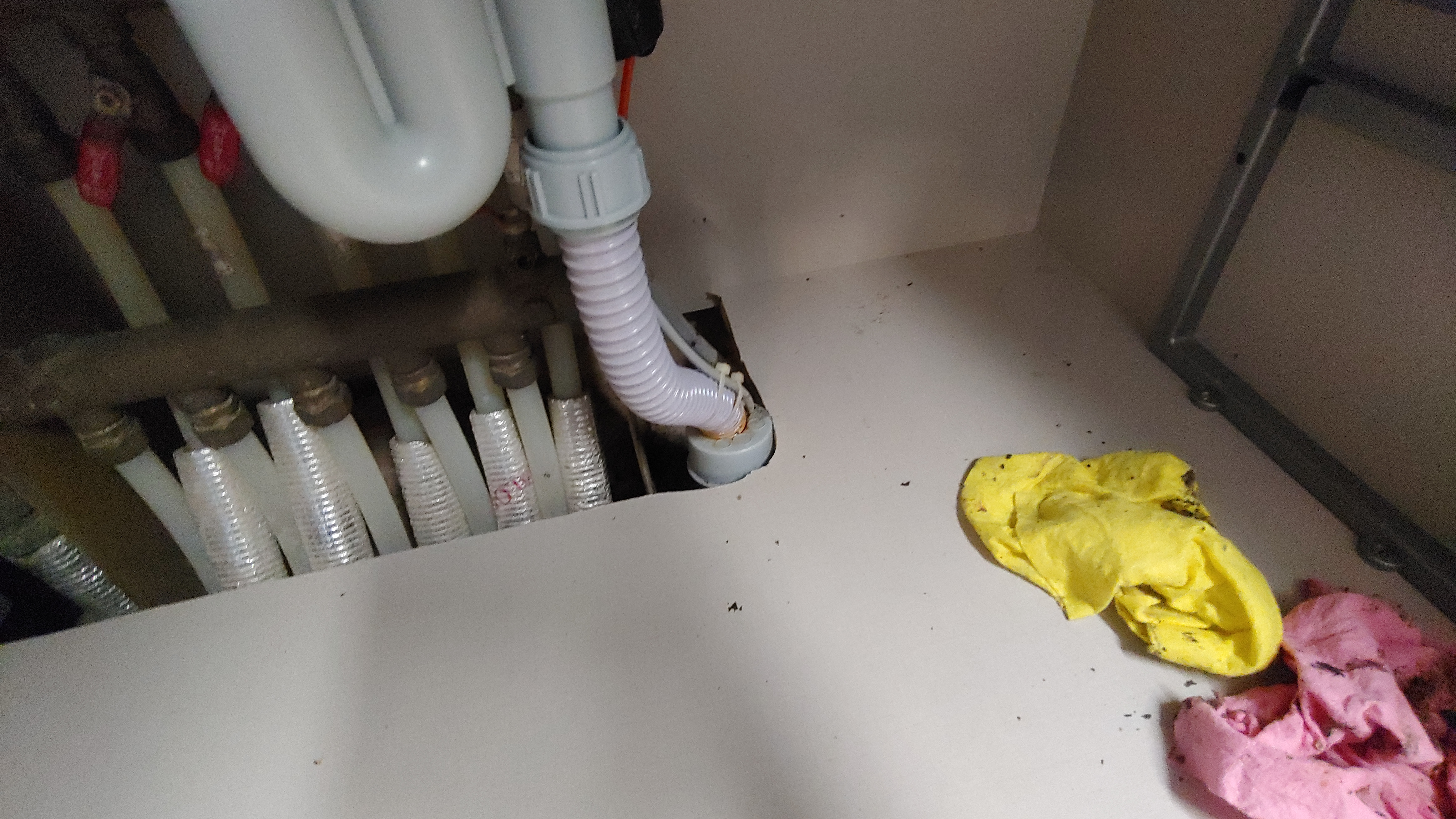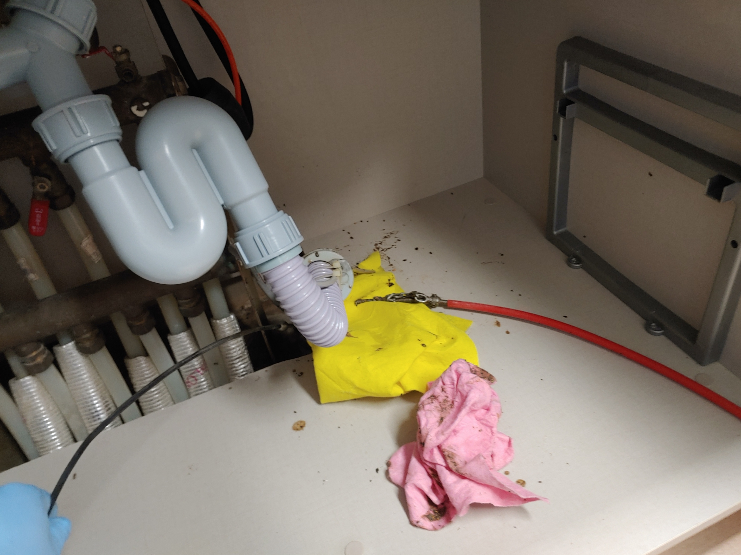 싱크대 아래 배관을 분리하고
