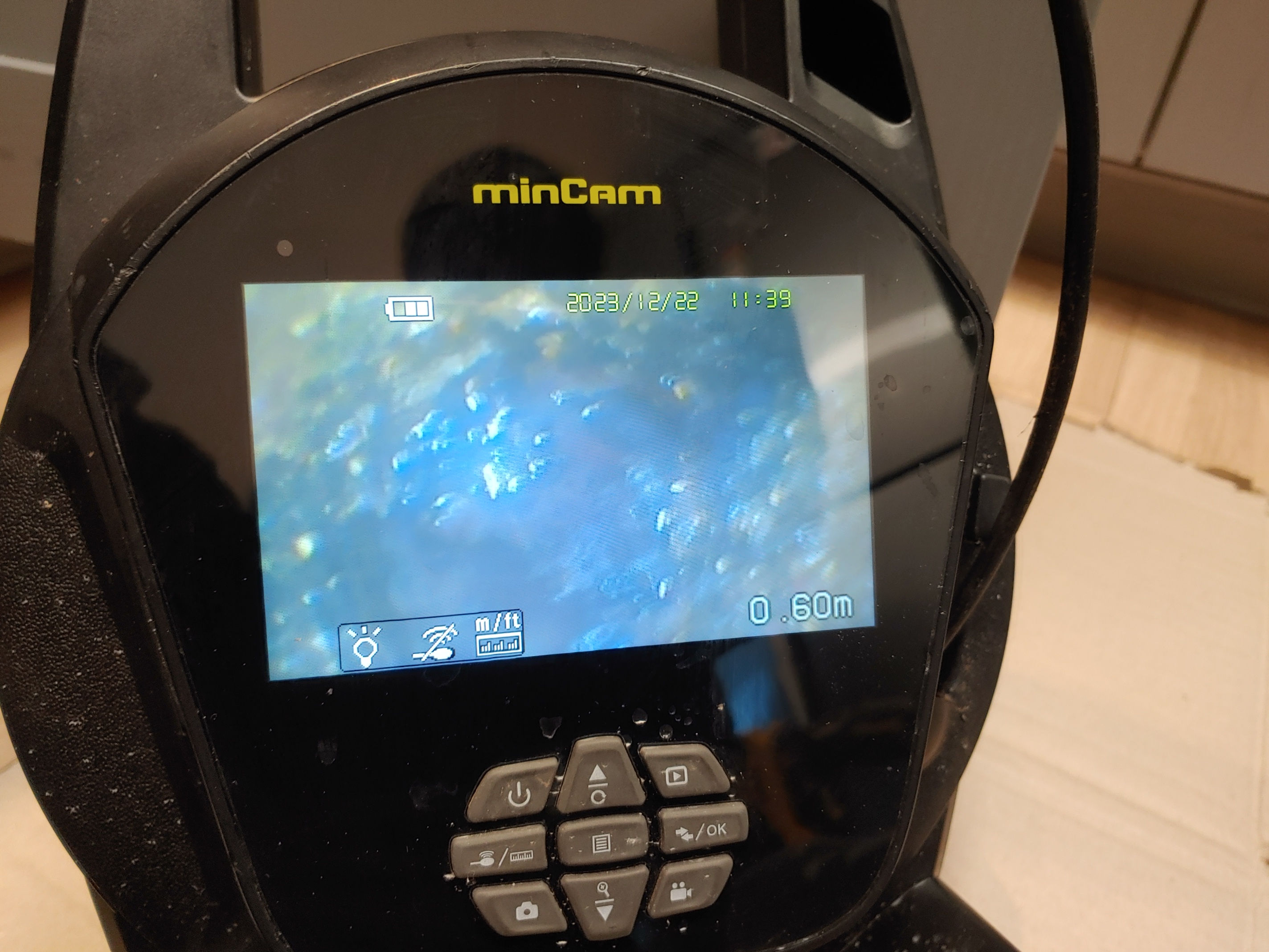 싱크대 배관에 카메라를 밀어넣어