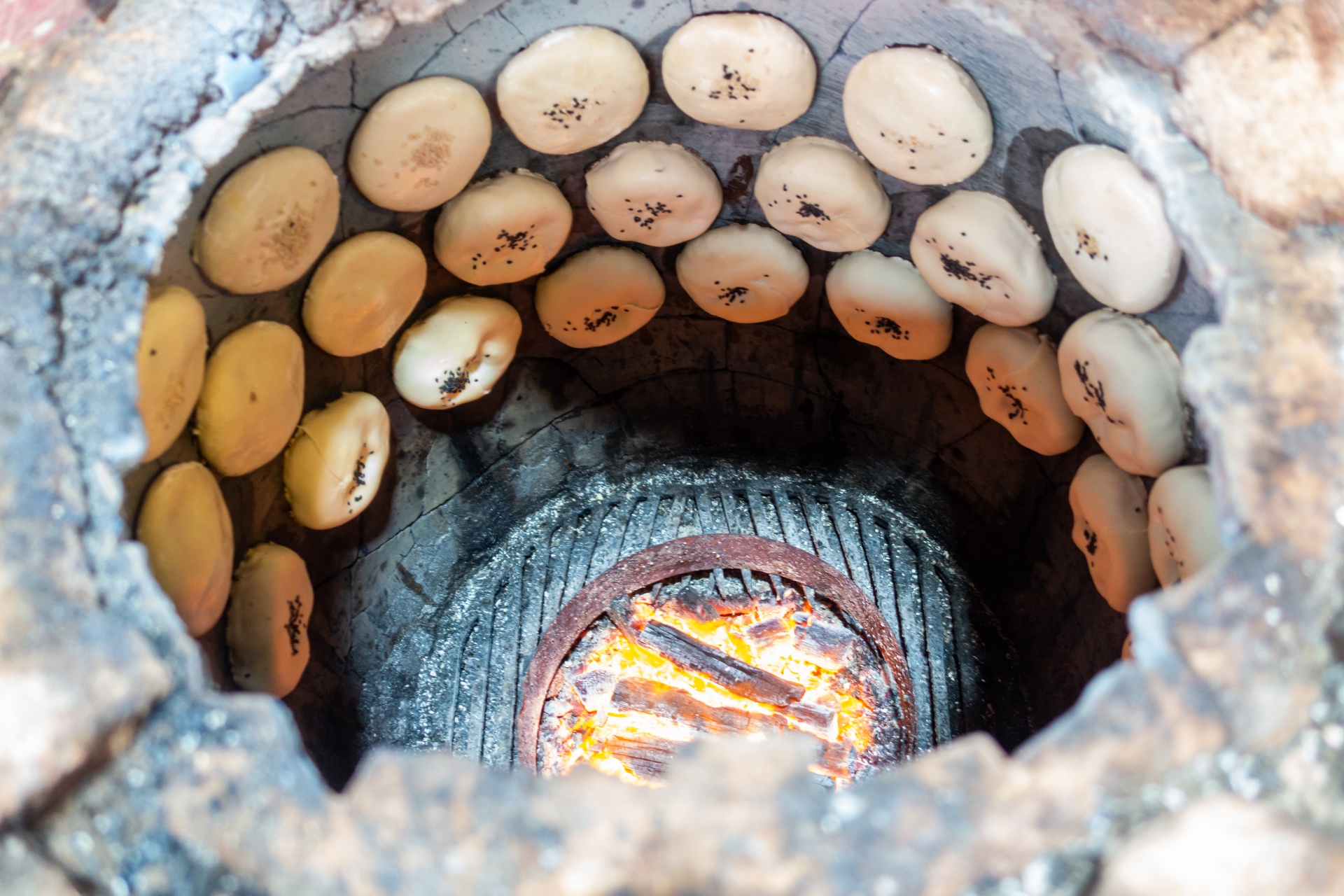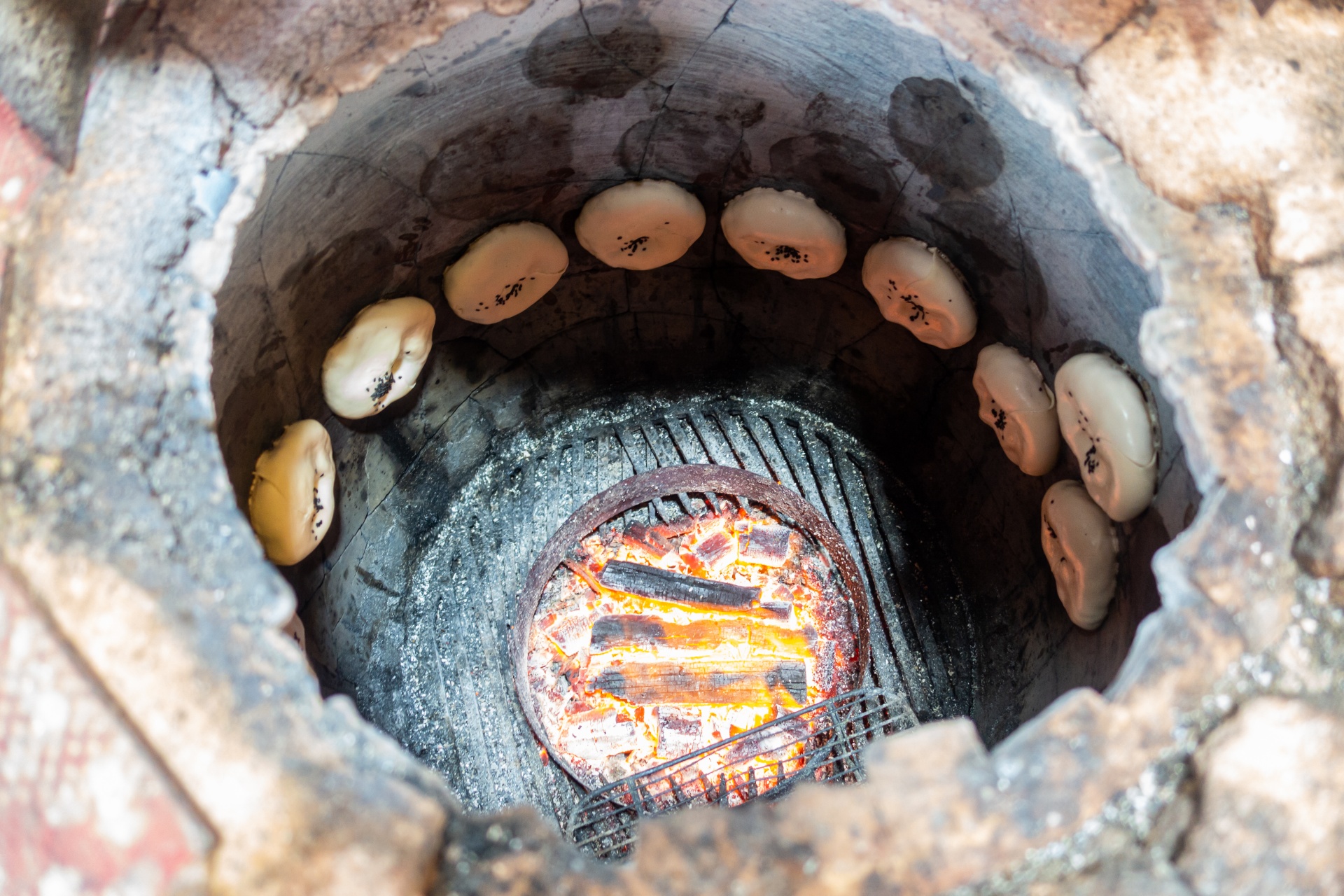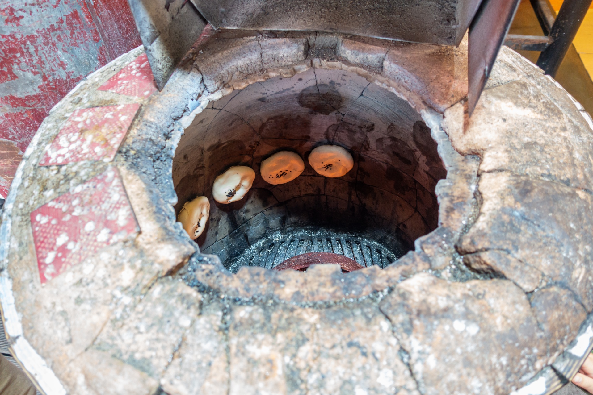 만두가 화덕에 들어가서 이렇게 옆면에 따악따악 붙여서 구워지더라구요, 저도 신기했습니다.