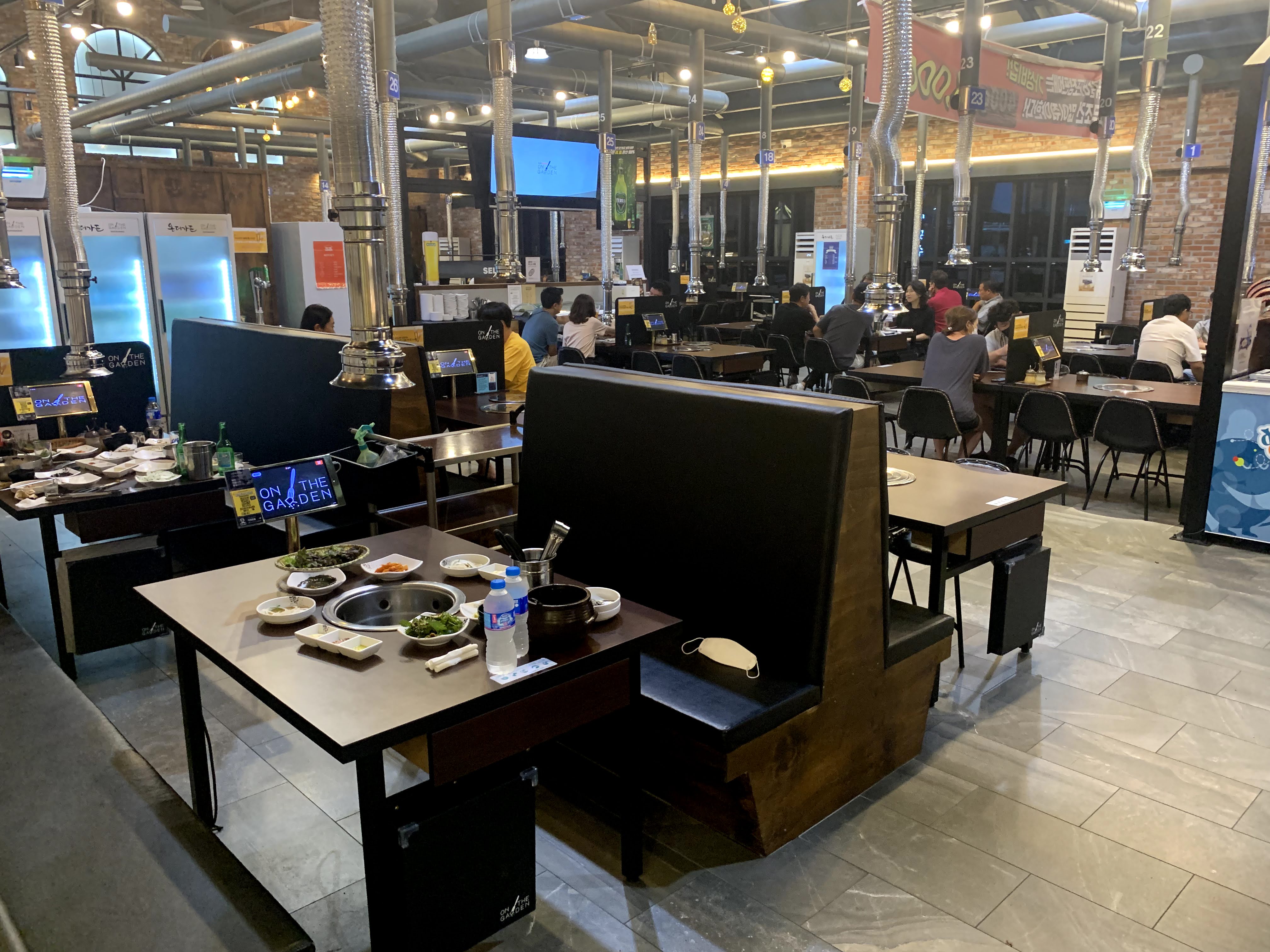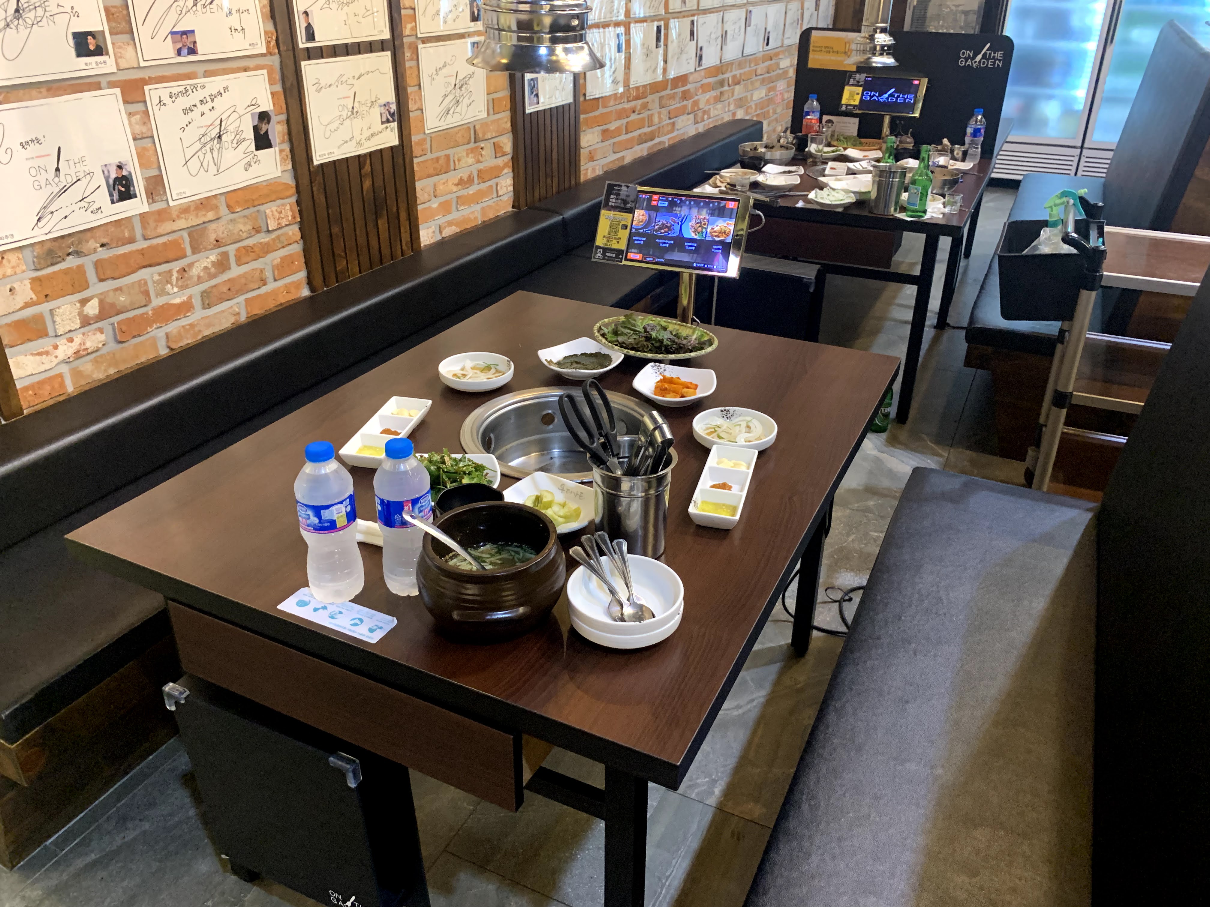 저희가 앉은 자리입니다. 테이블 위에 테블릿처럼 보이는 화면 보이시죠?