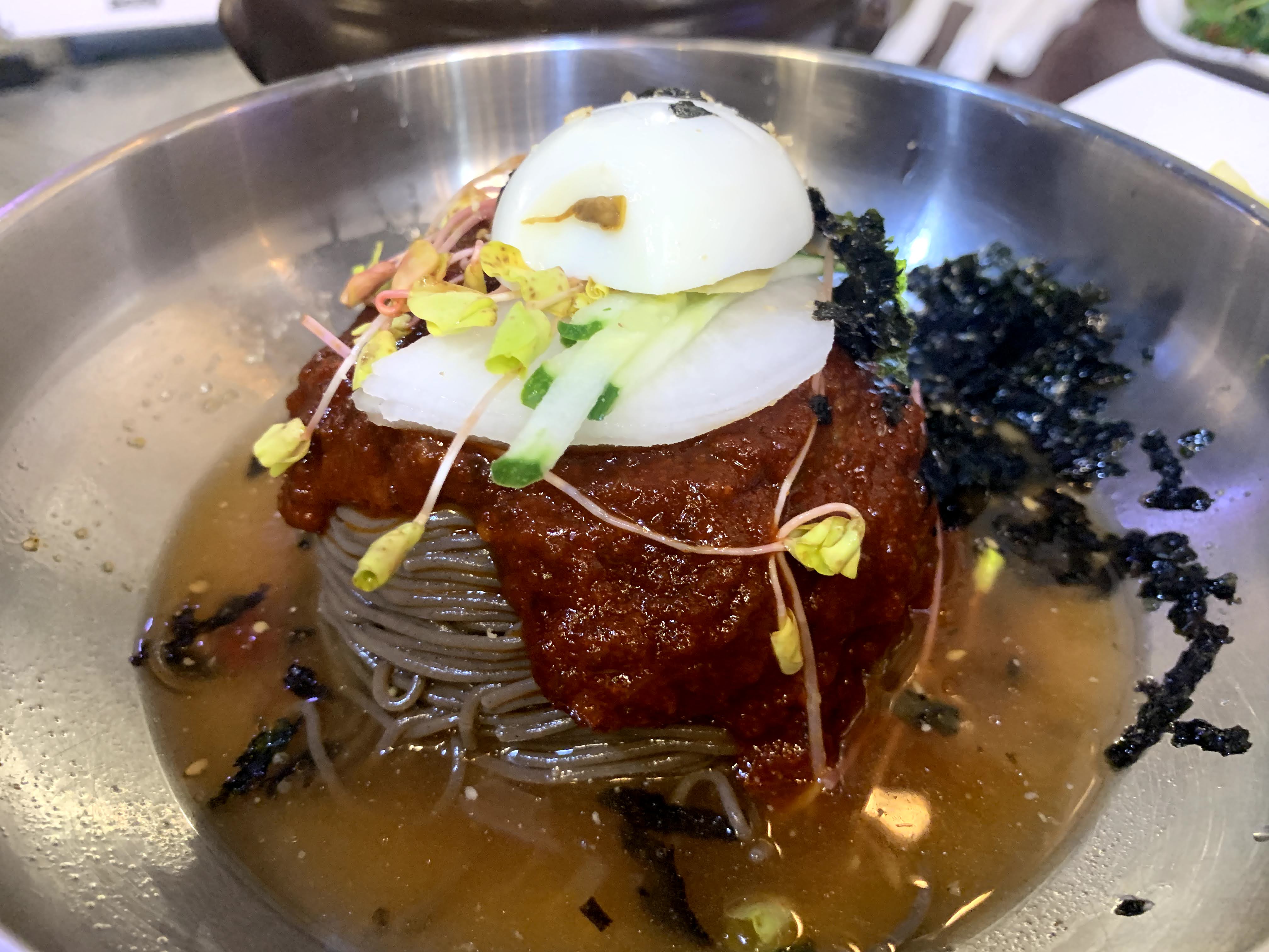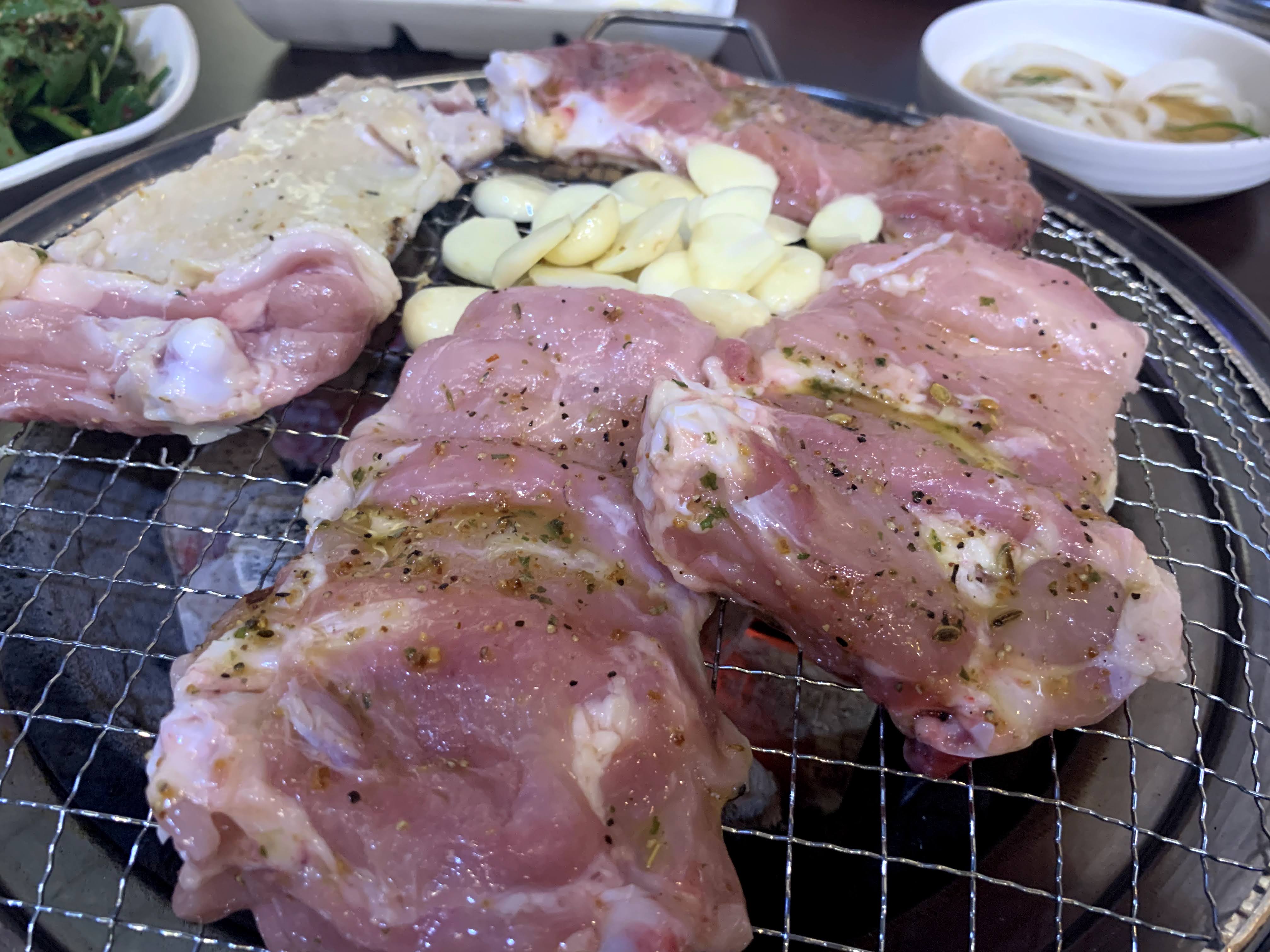 저희는 소금닭갈비와 막국수를 주문했습니다.