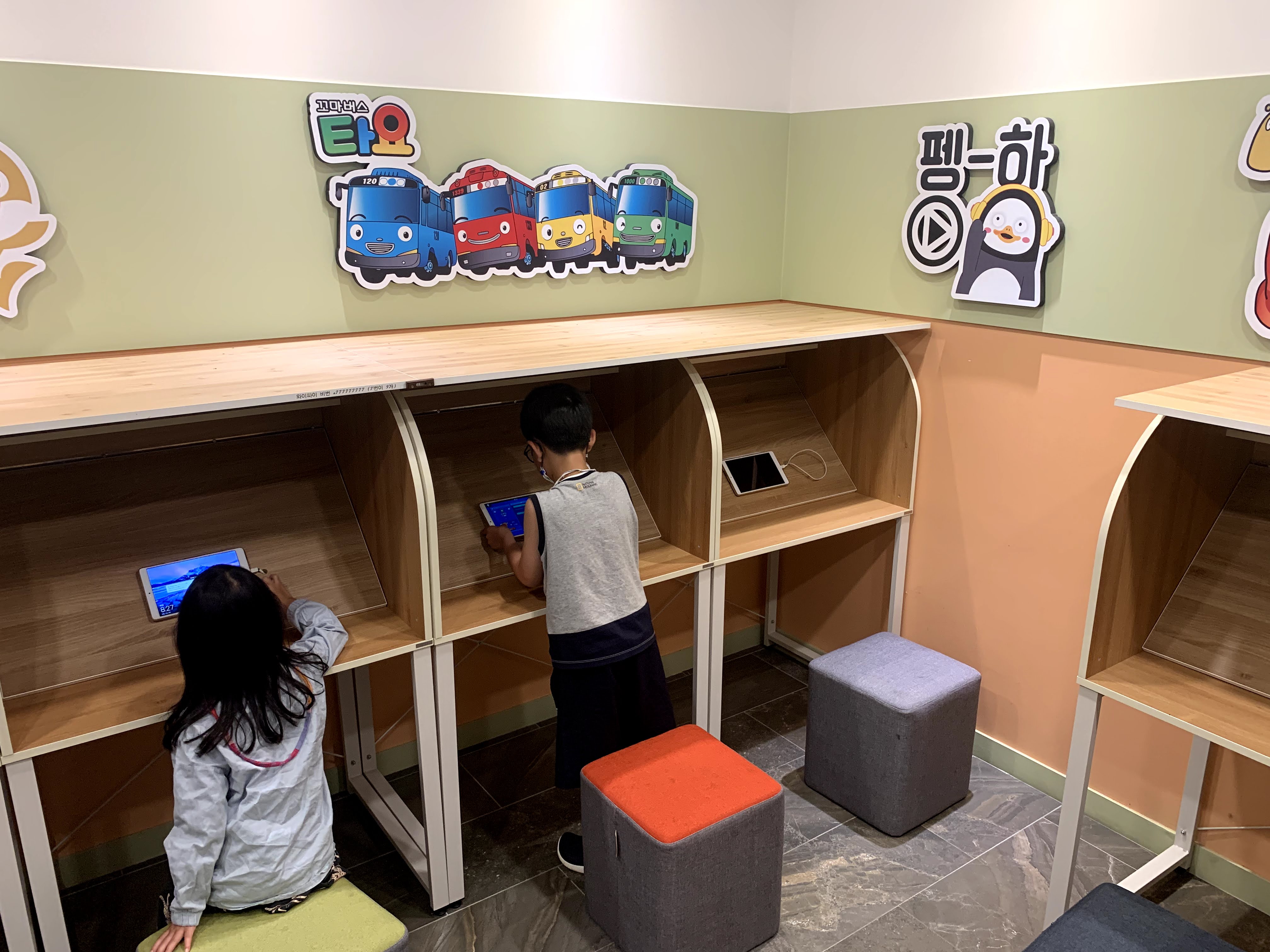 저기 뒤에보이는 곳이 테블릿이 있던 공간인데 아이들이 간단하게 게임을 즐길 수 있도록 준비가 되어있습니다.