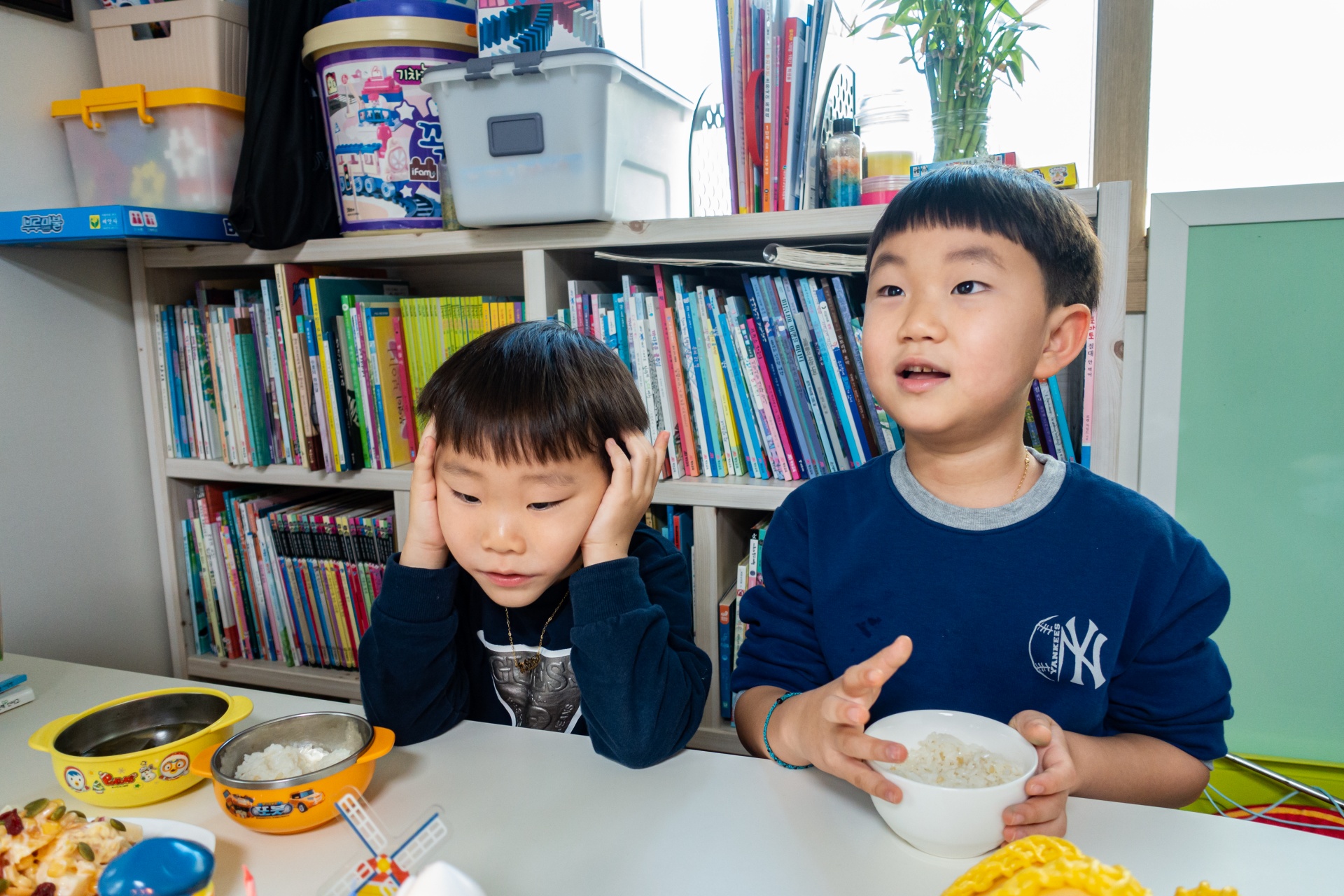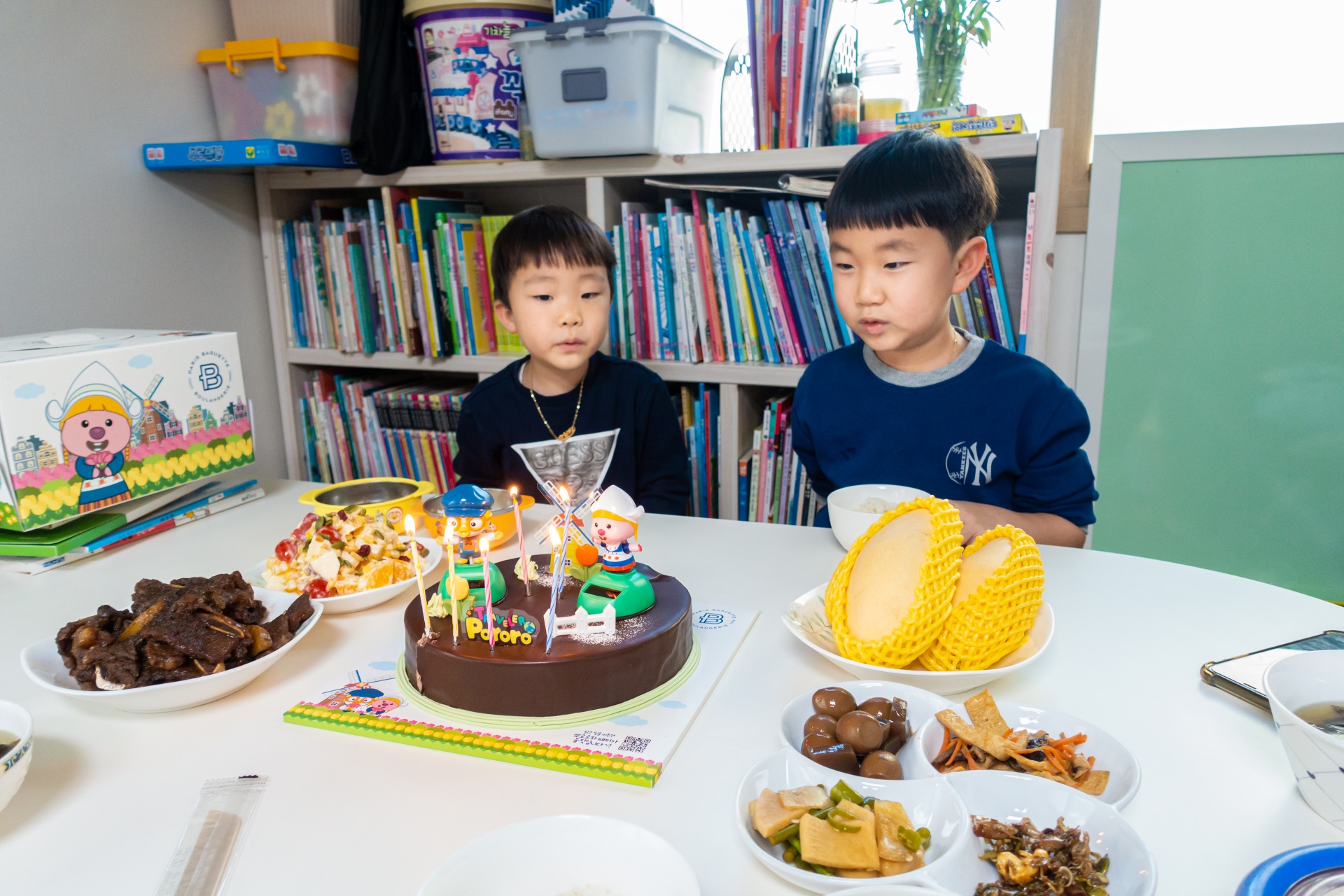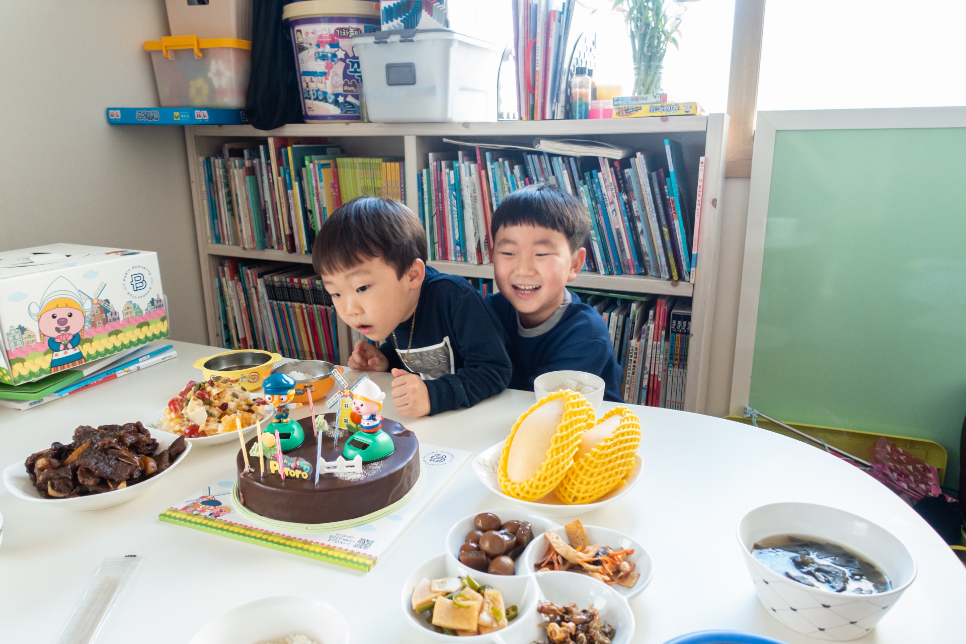 밥과 미역국을 받은 아이들... 빨리 생일노래를 부르고 싶은걸까요? ㅎㅎ 왜 이런 표정을 하고 있었는지 잘 모르겠네요^^;