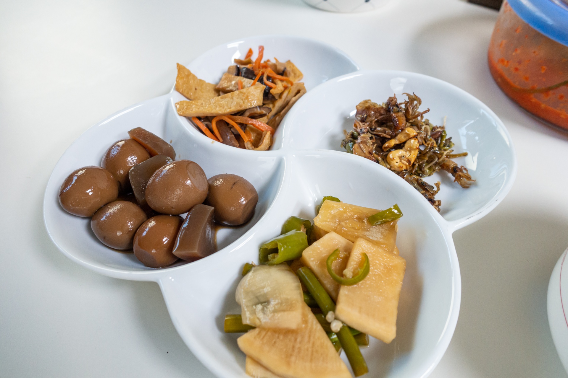 간단하게 밑반찬도 준비했네요. 원래는 이런접시에 먹지 않는데 특별한 날이니까 아내가 꺼냈나봅니다.