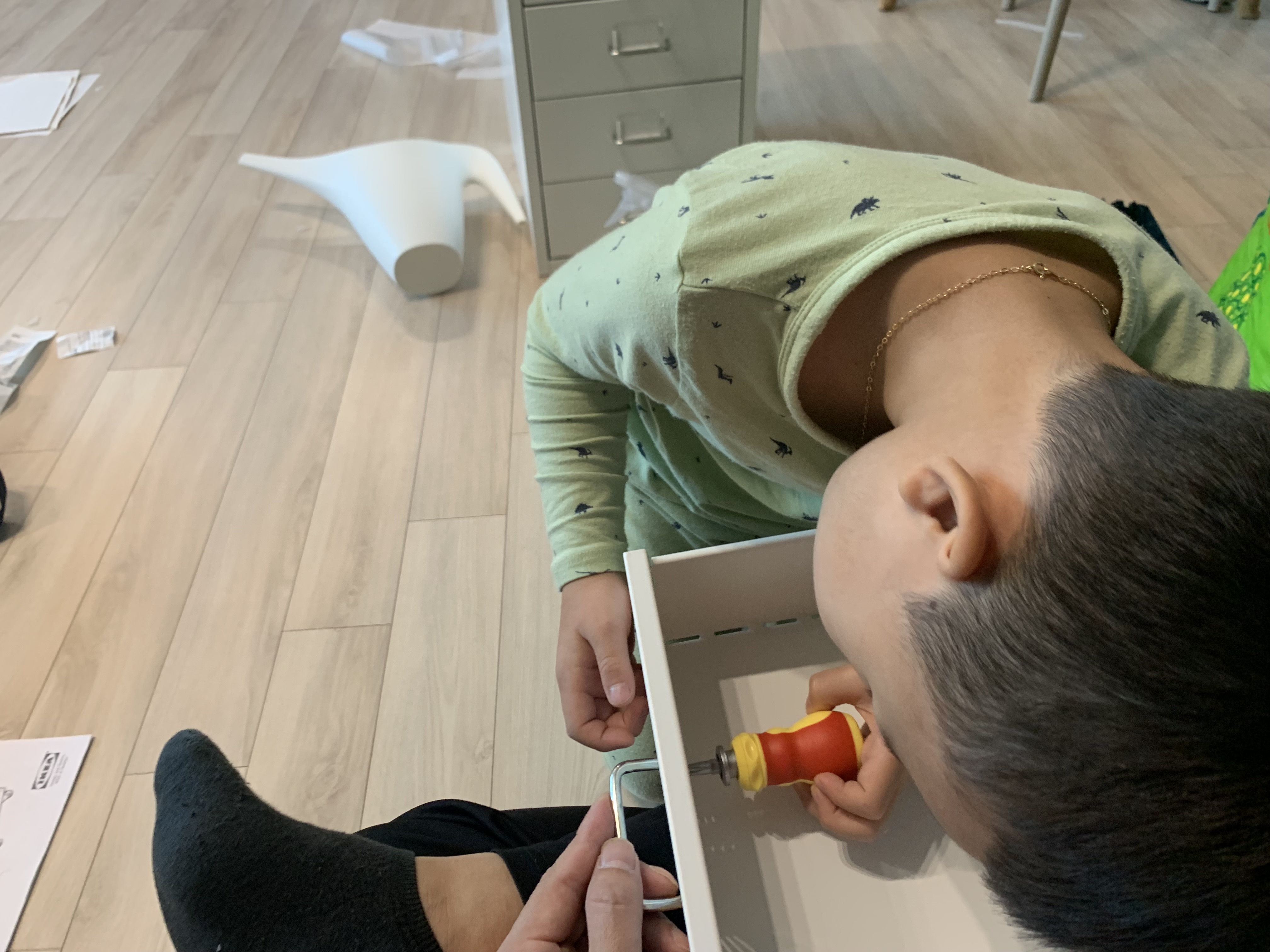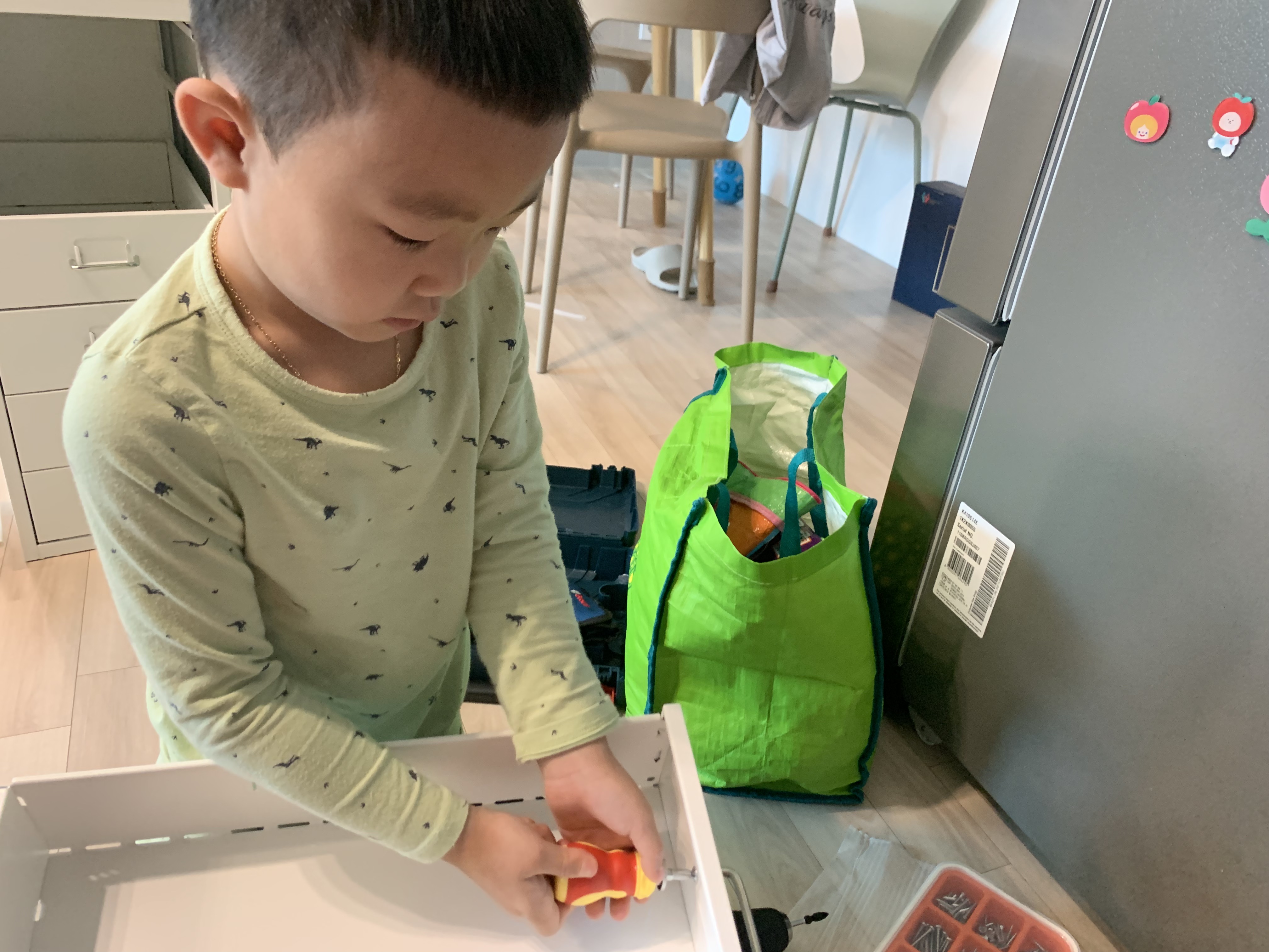 둘째아들이 이케아서럽장을 조립하는데 관심을 보입니다. 그래도 혼자하는거 보다는 누군가 도와주면 조금 더 쉽게 조립을 할 수 있습니다.