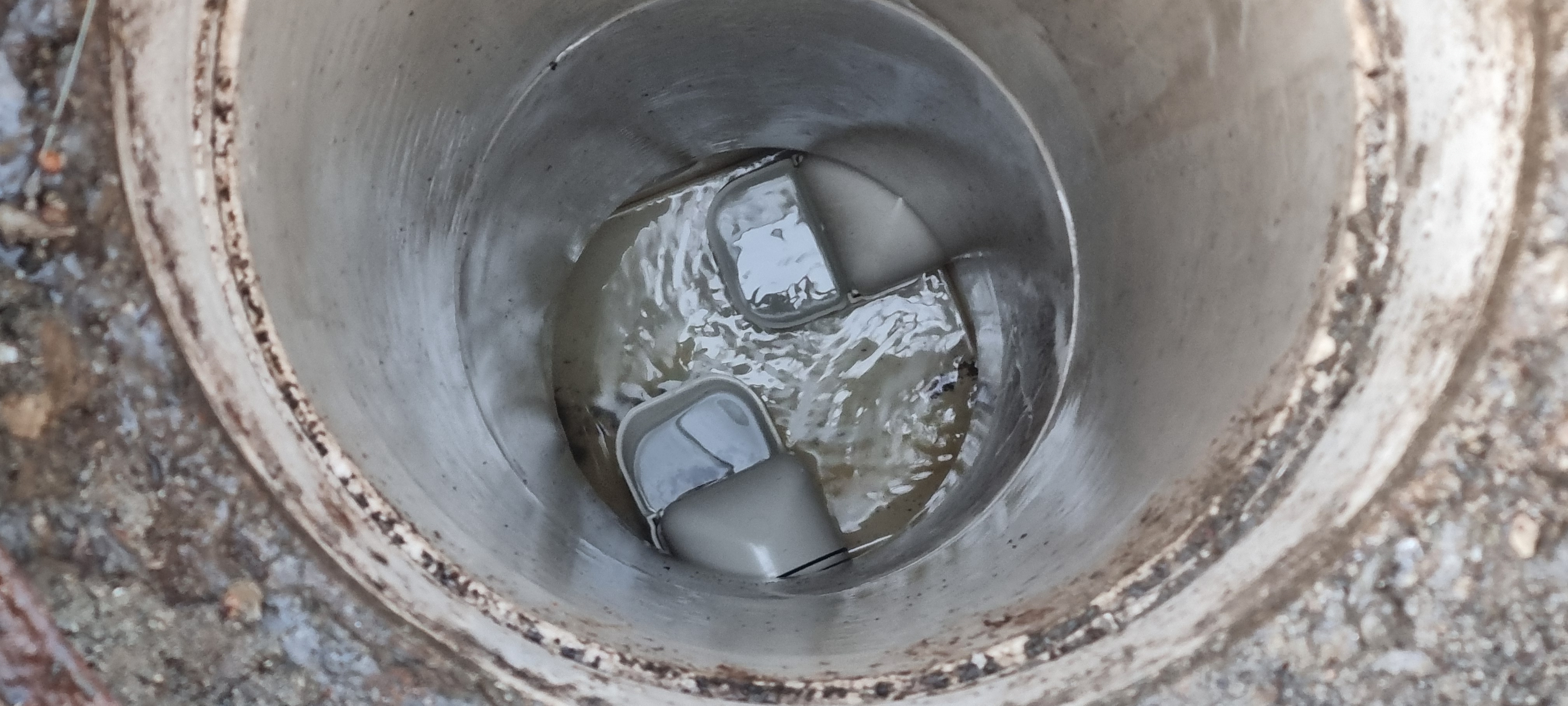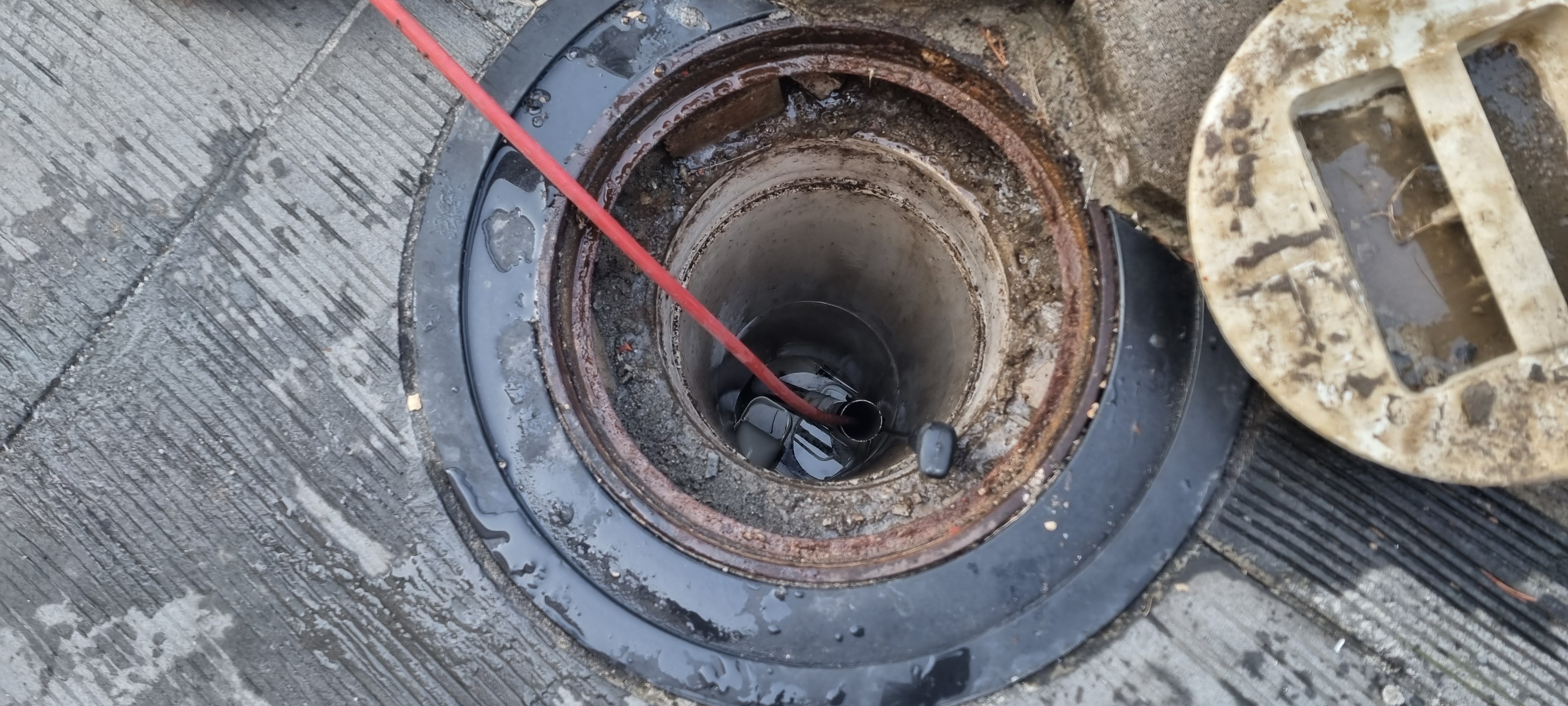 먼저 긴 파이프를 이용해 물이 내려갈 수 있도록 길을 찾았습니다. 다행히 출수쪽으로 물이 빠지기 시작하면서 건물내부 하수배관에 정체되어 있던 물이 흘러나옵니다.