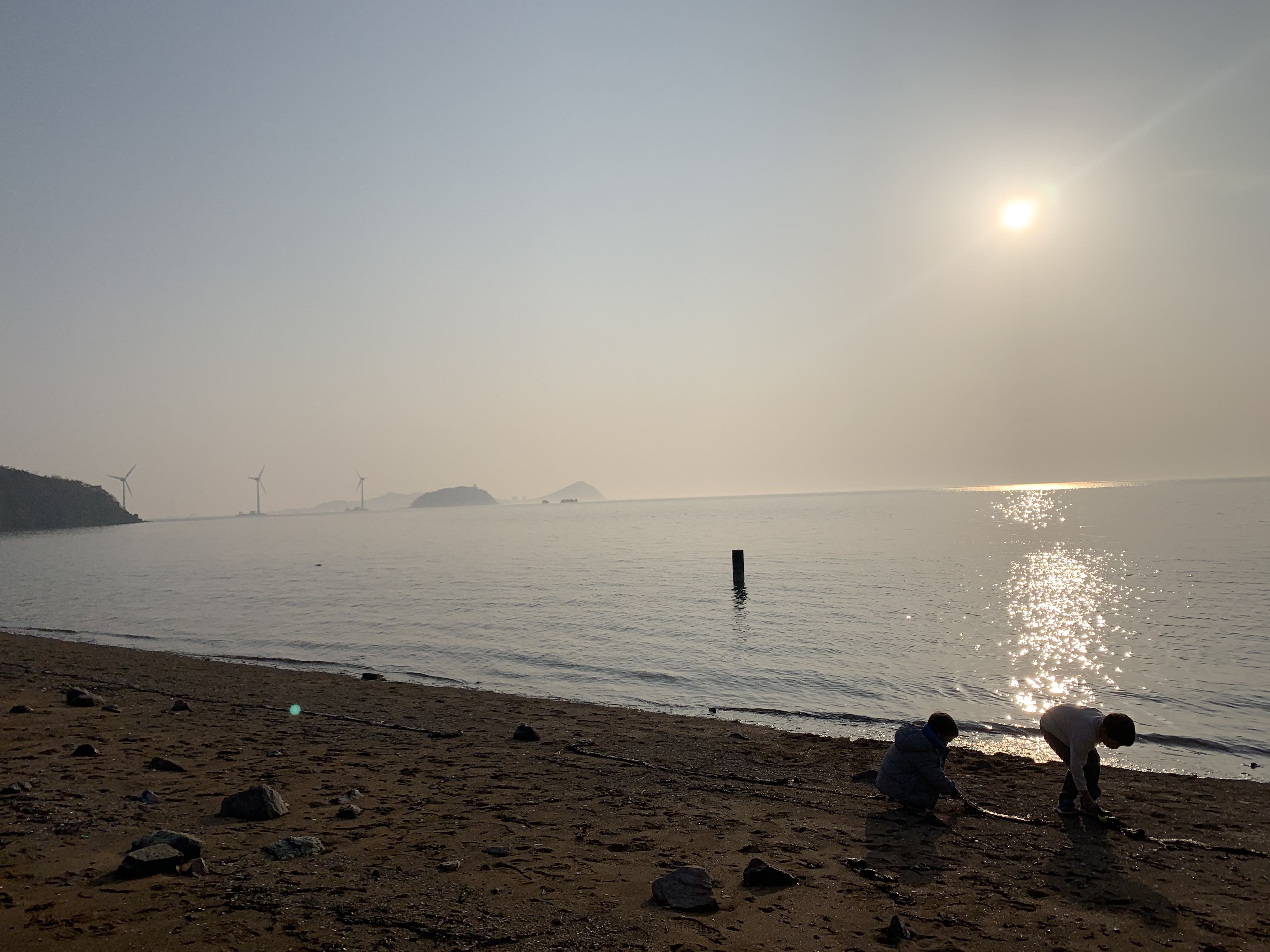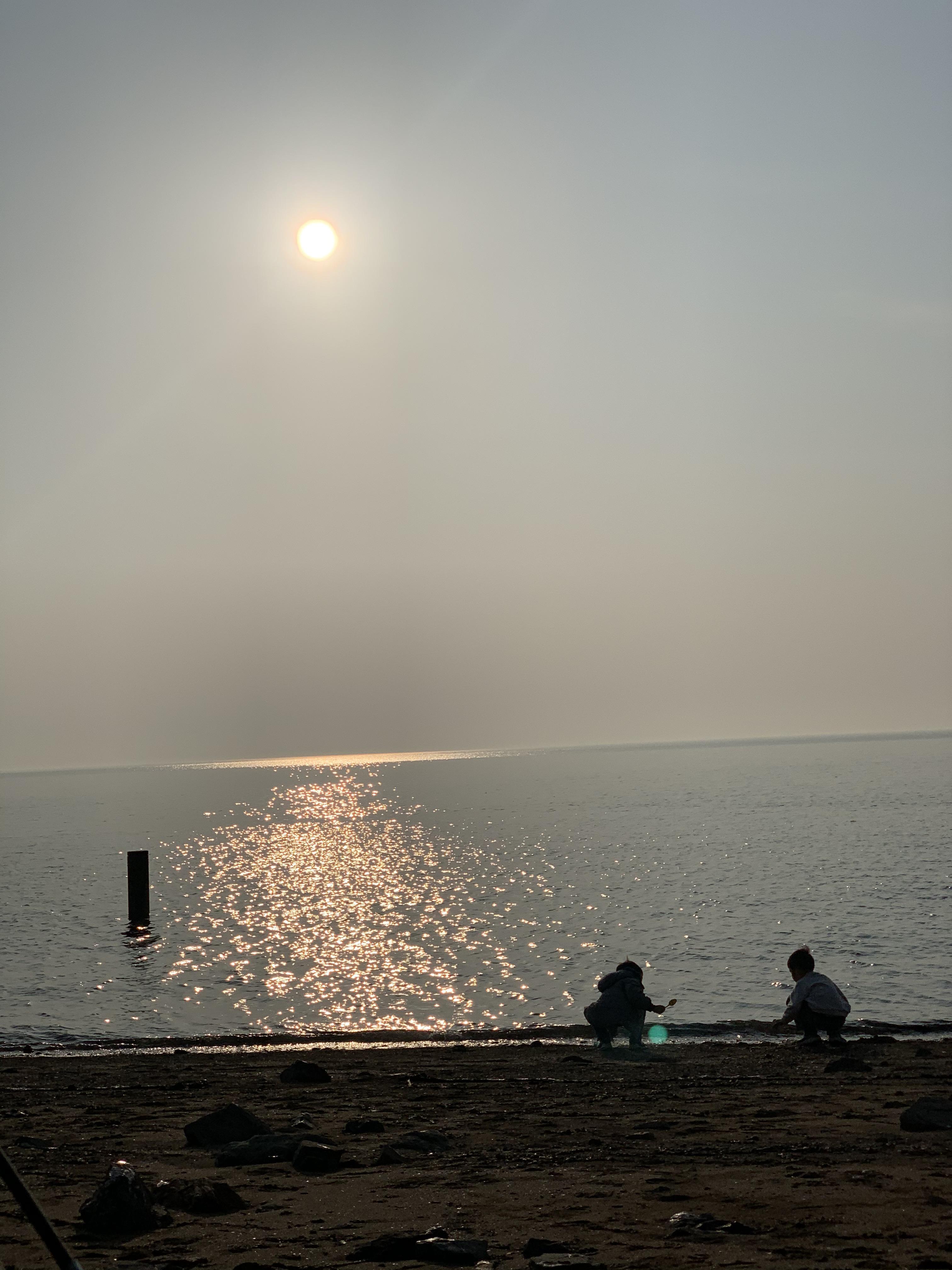 물이 꽤 많이 들어왔습니다. 아이들은 바닷가에서 잘 놀고있습니다. 바닷가에 비친 석양이 너무 멋지지 않나요?