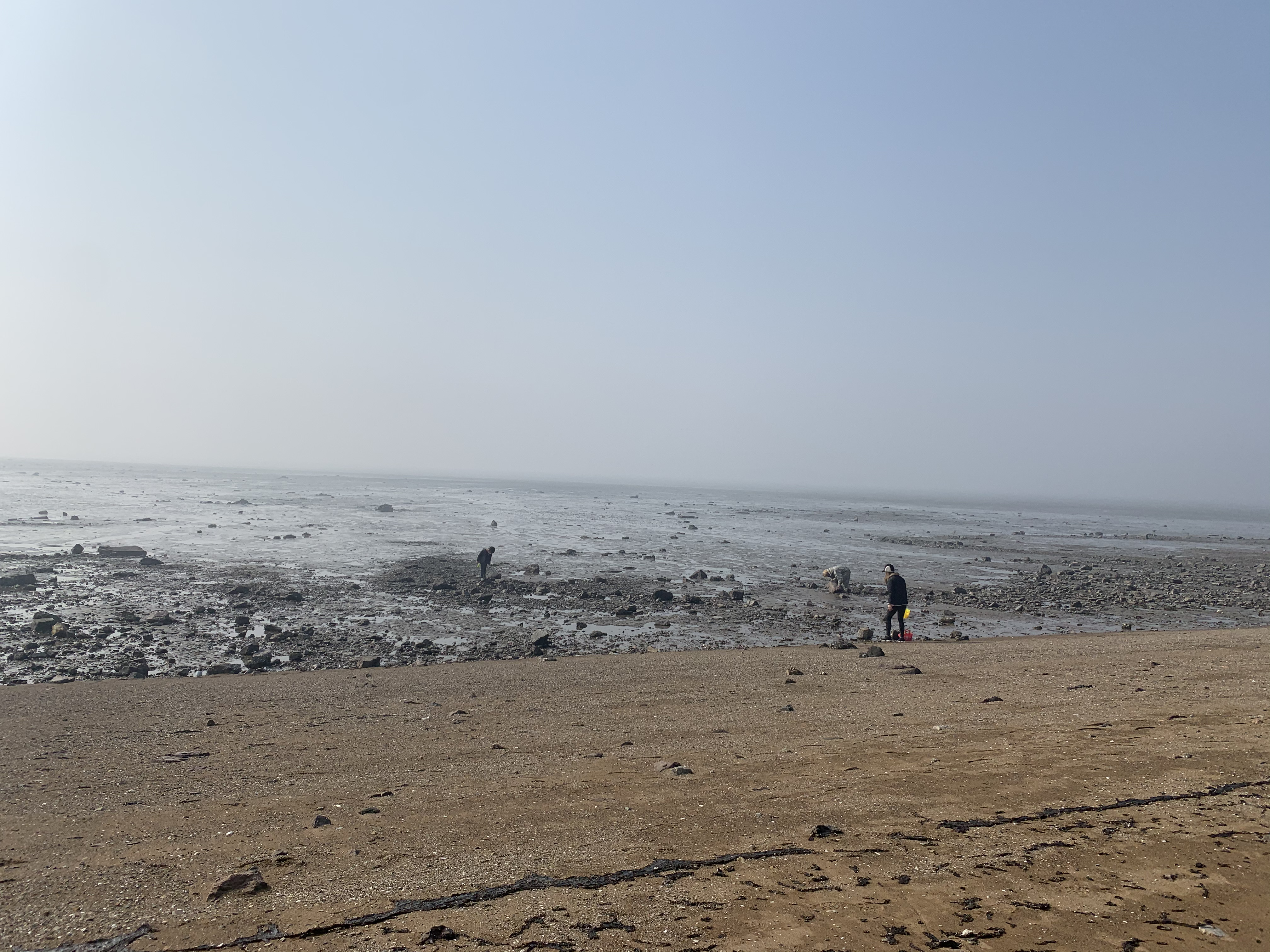 다른 가족분들이 와서 바닷가에서 무엇인가를 잡고있습니다.,