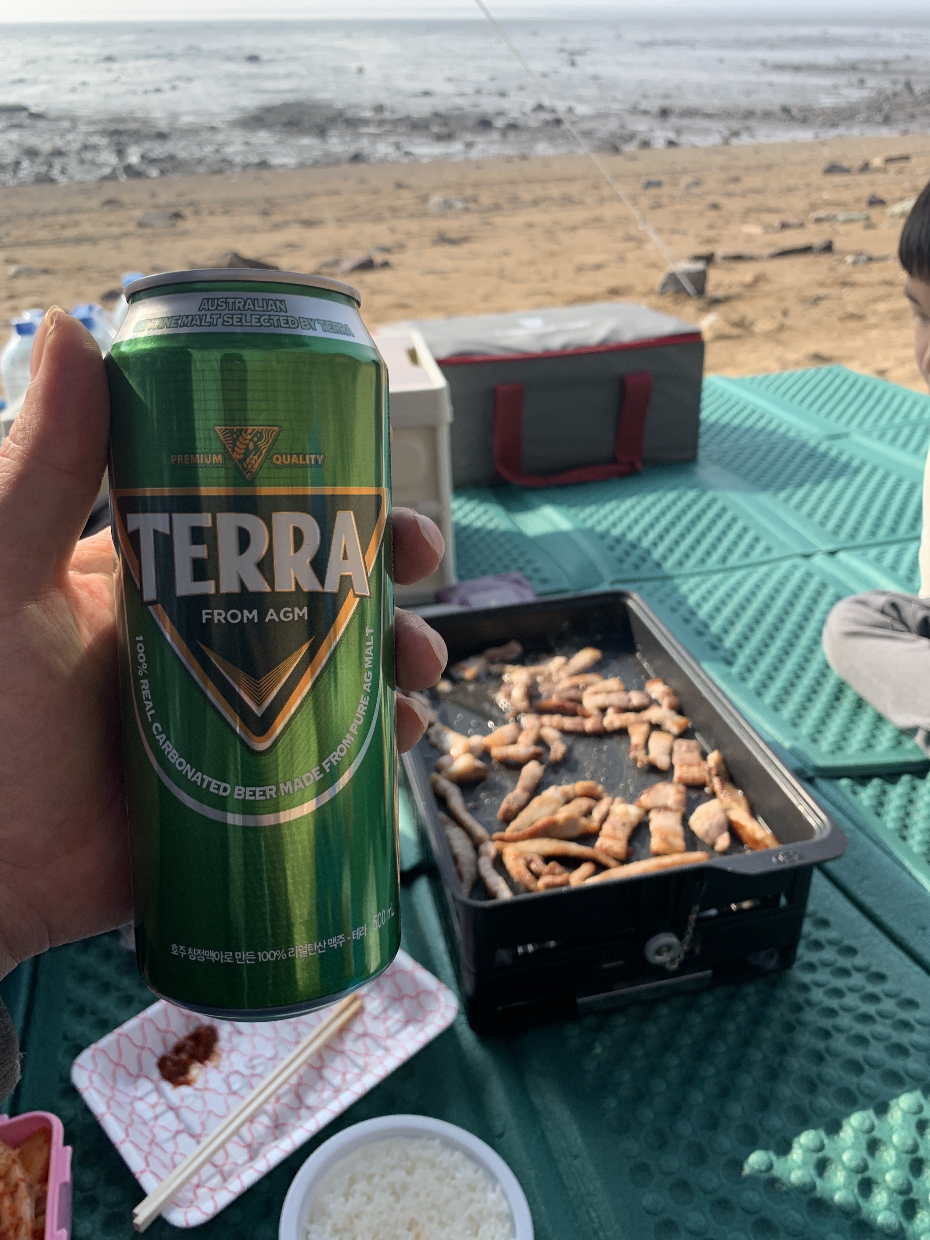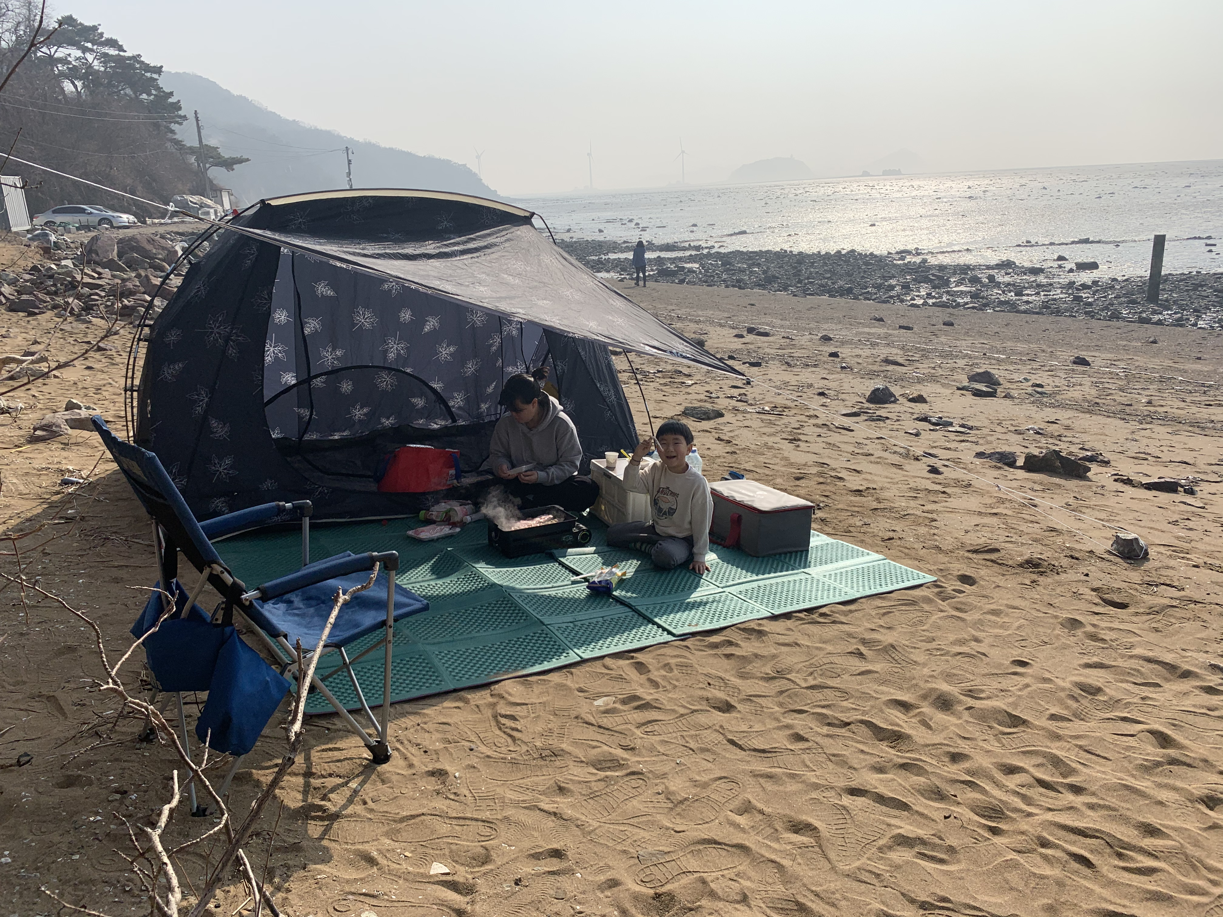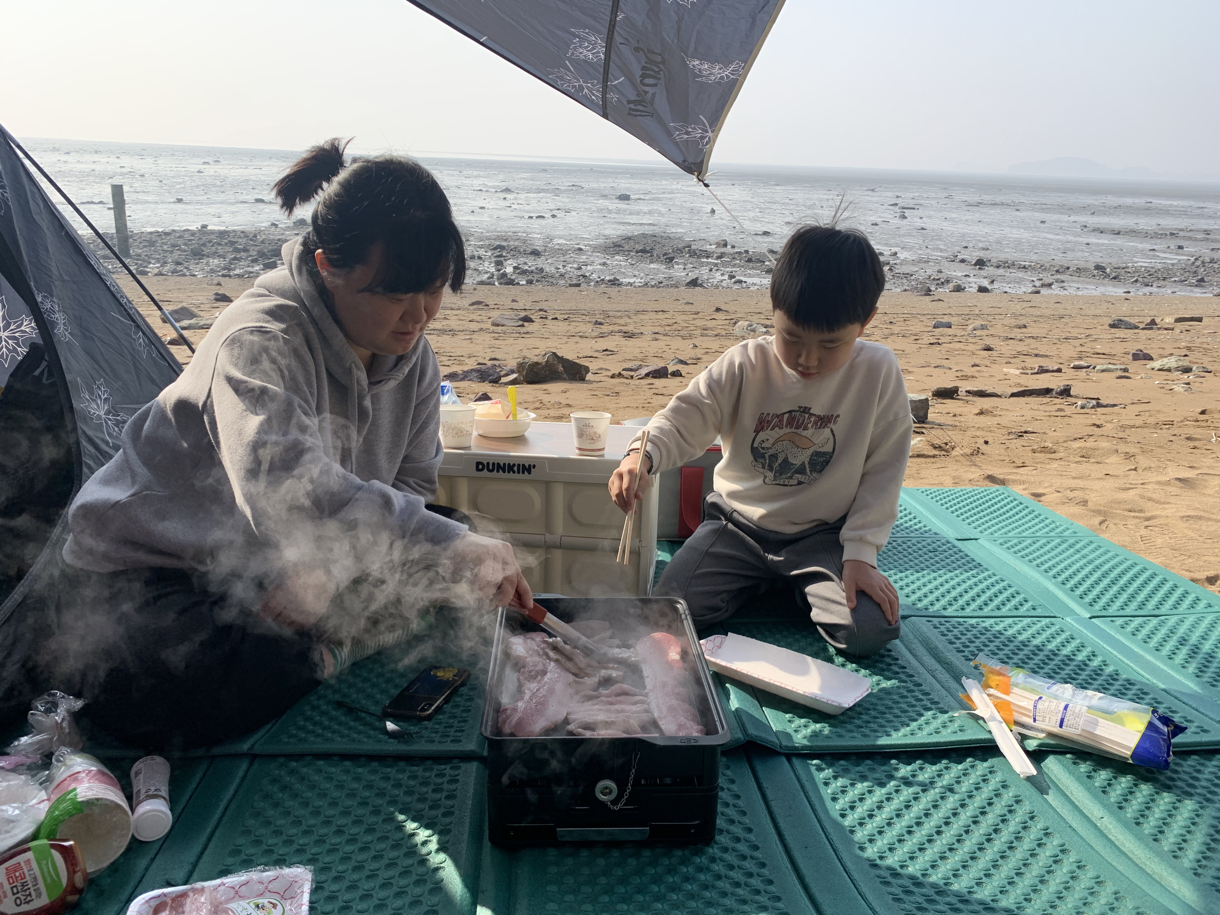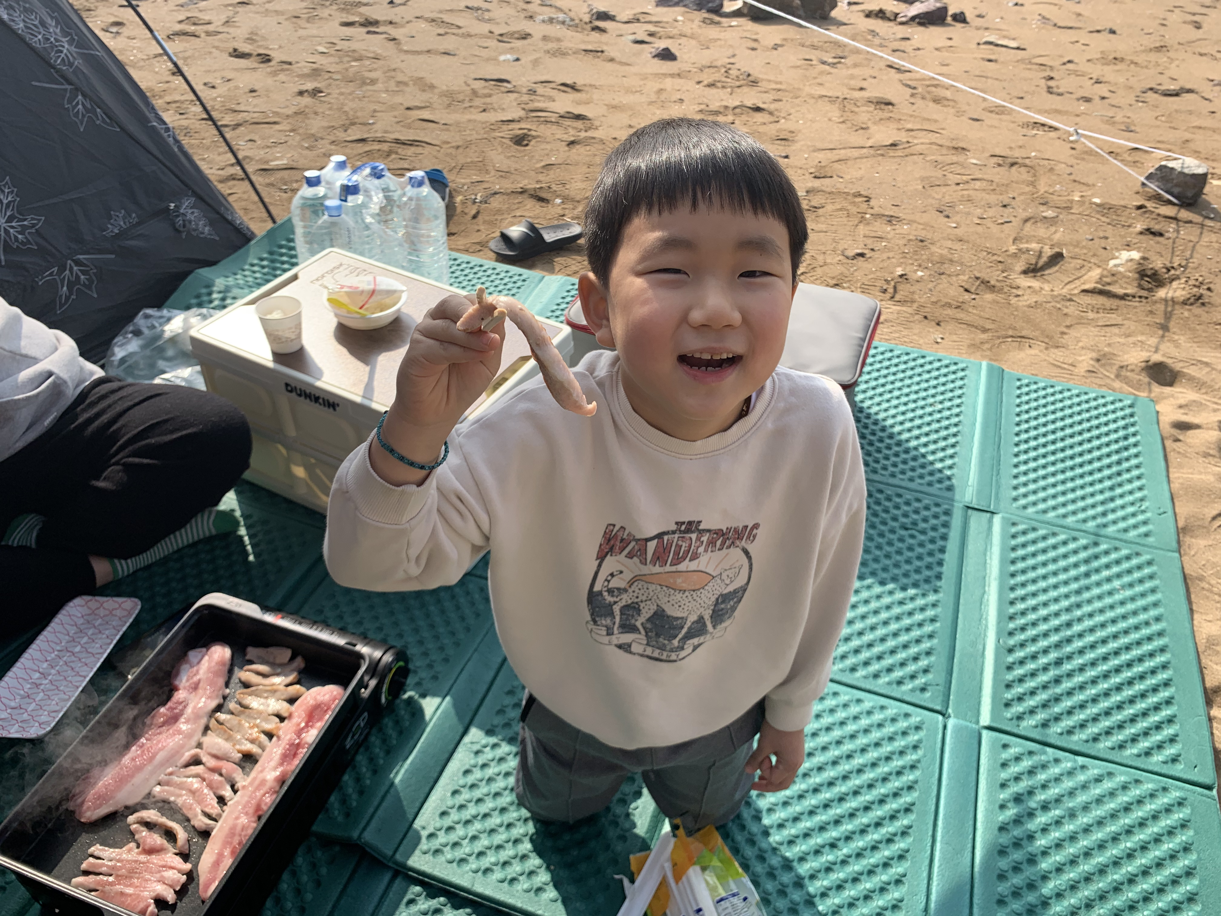 바닷가에서 이렇게 고기를 구워먹으면 엄청 맛있는거 아시죠? 가족과 함께하는 시간이 행복입니다.