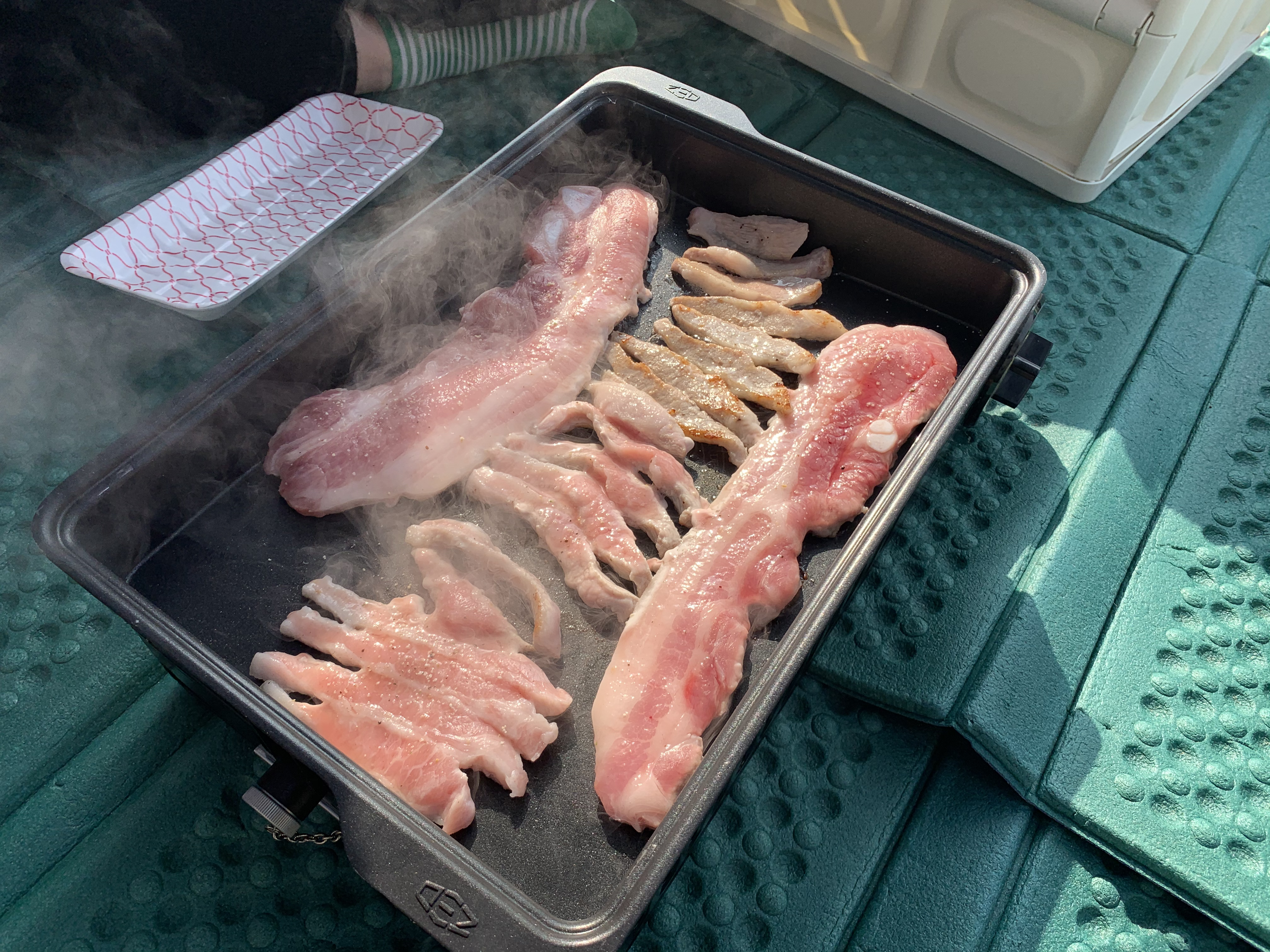 캠핑다닐때 사용하는 구이바다를 준비해왔습니다. 간단하게 고기구워 먹기에는 최고입니다.