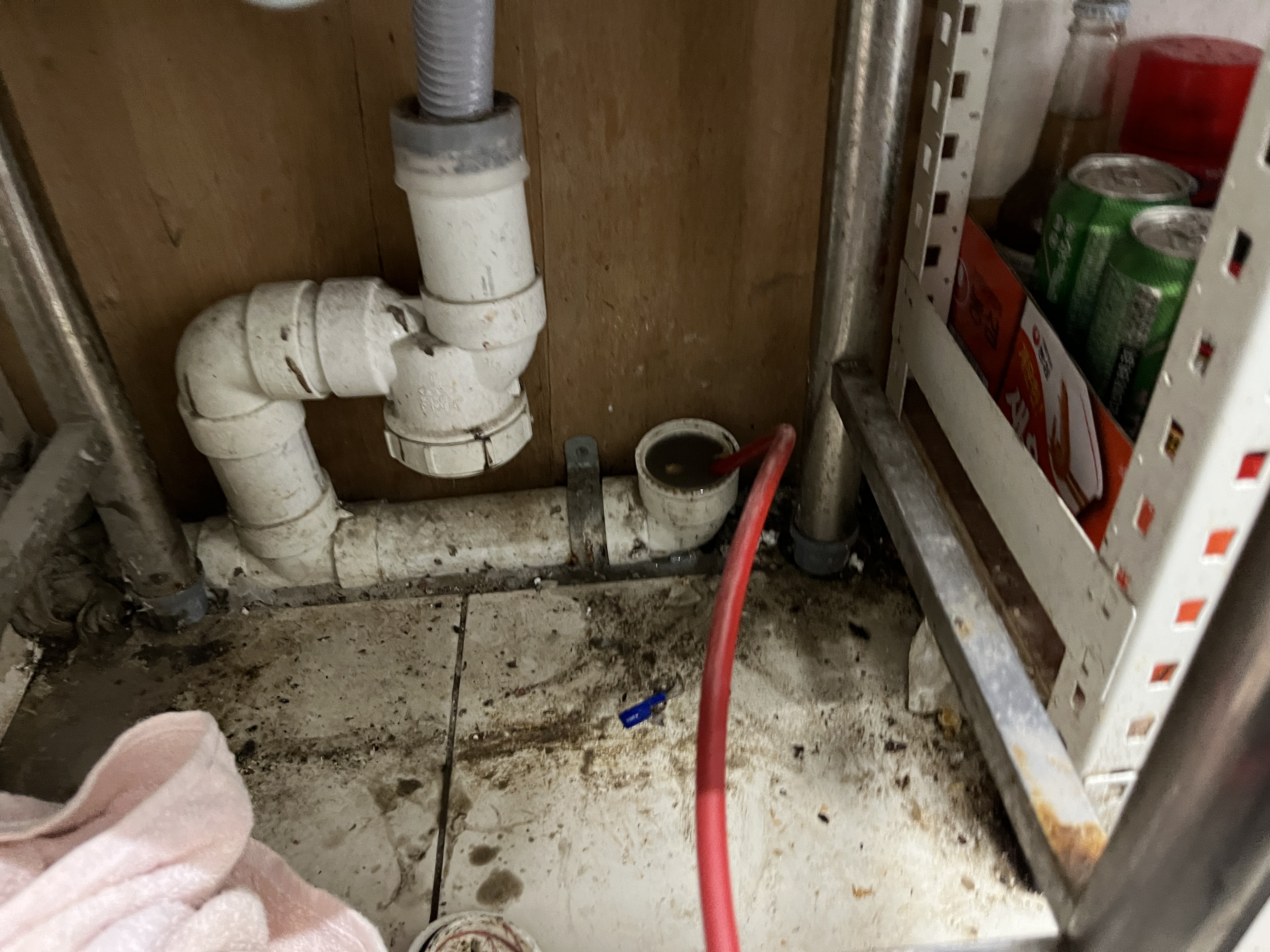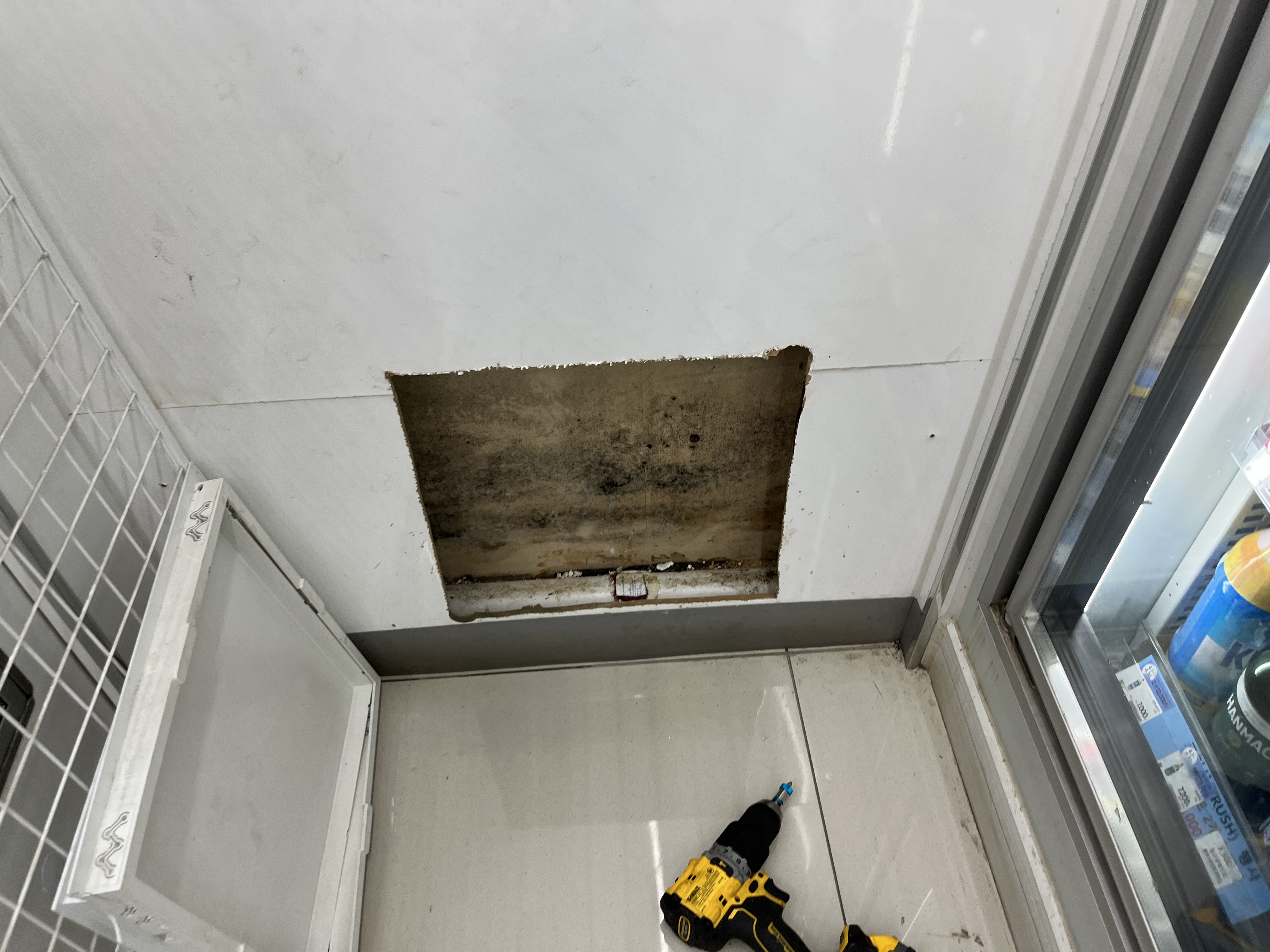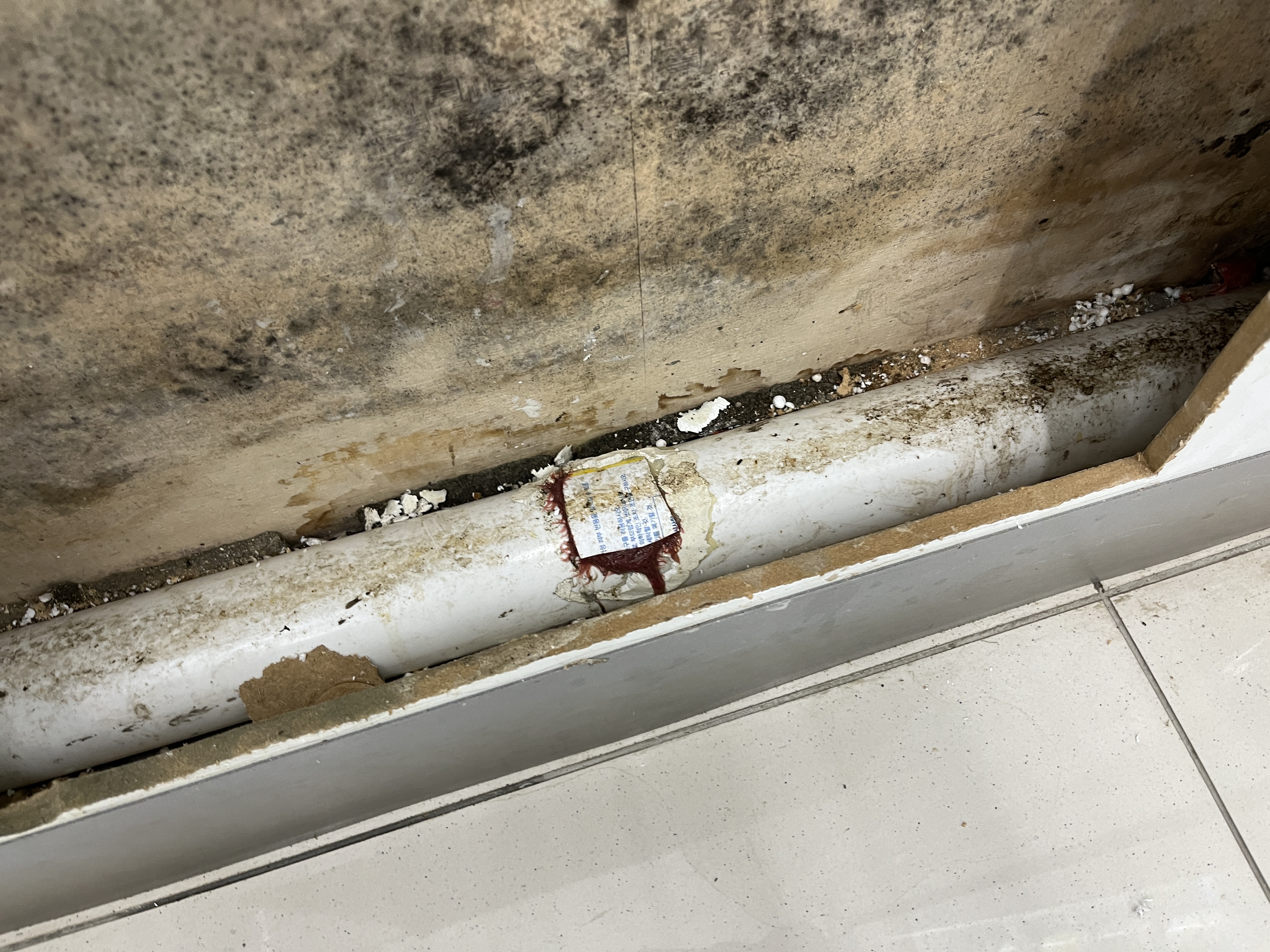이전 업체에서 작업한 부분인데 여기서 물이 새서 옆가게에 큰 피해를 준 상황이었습니다.