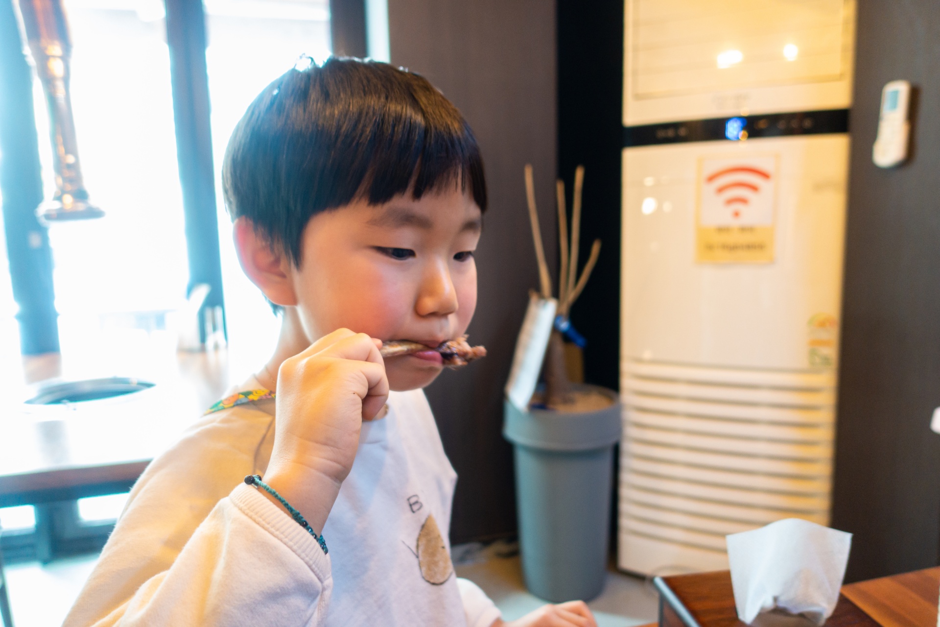 둘째아들도 뭐 여지없이 고기를 뜯고있습니다. 표정에서 느껴지시죠? 맛있으니 전투적으로 먹습니다 ㅋㅋ