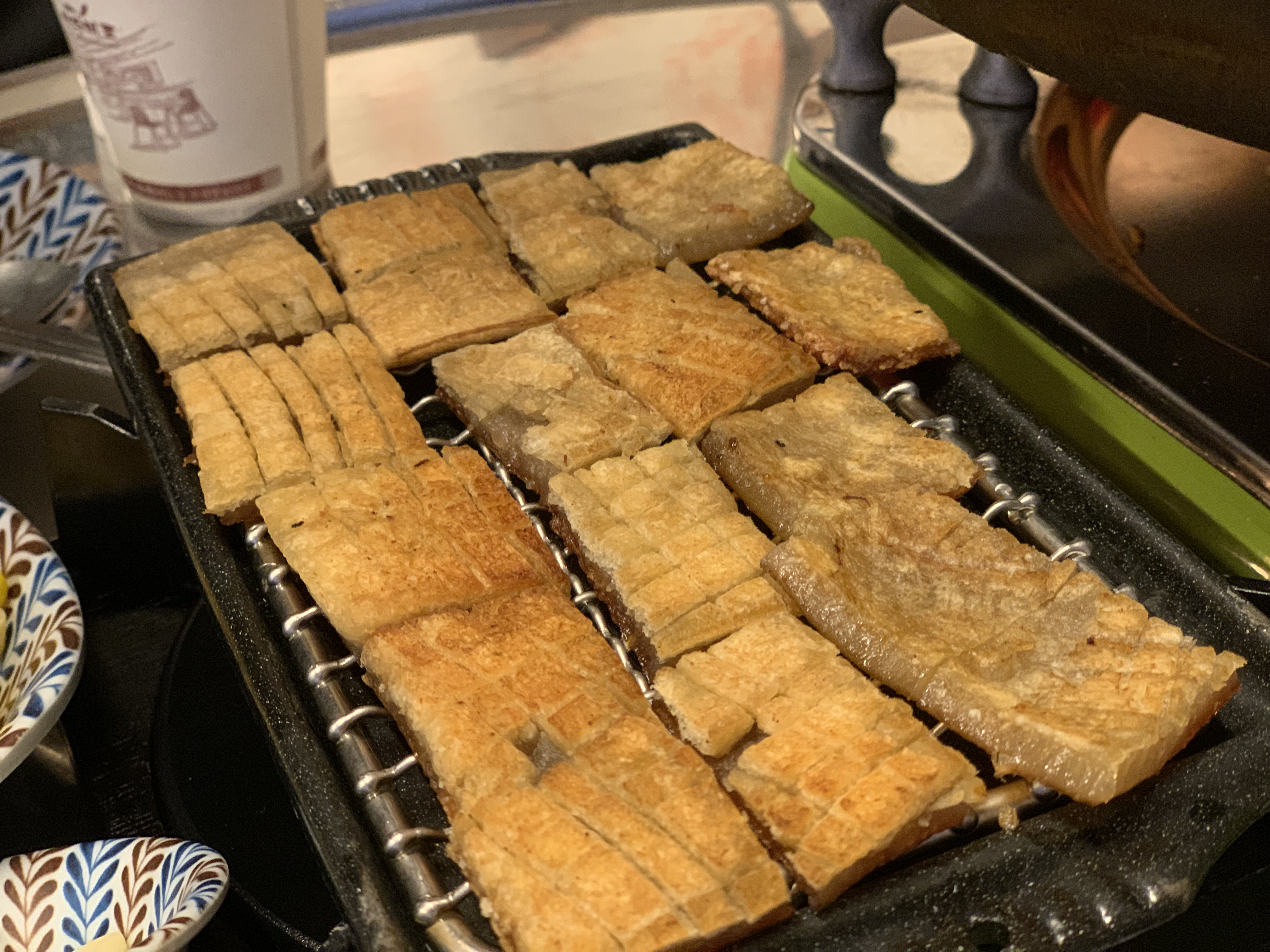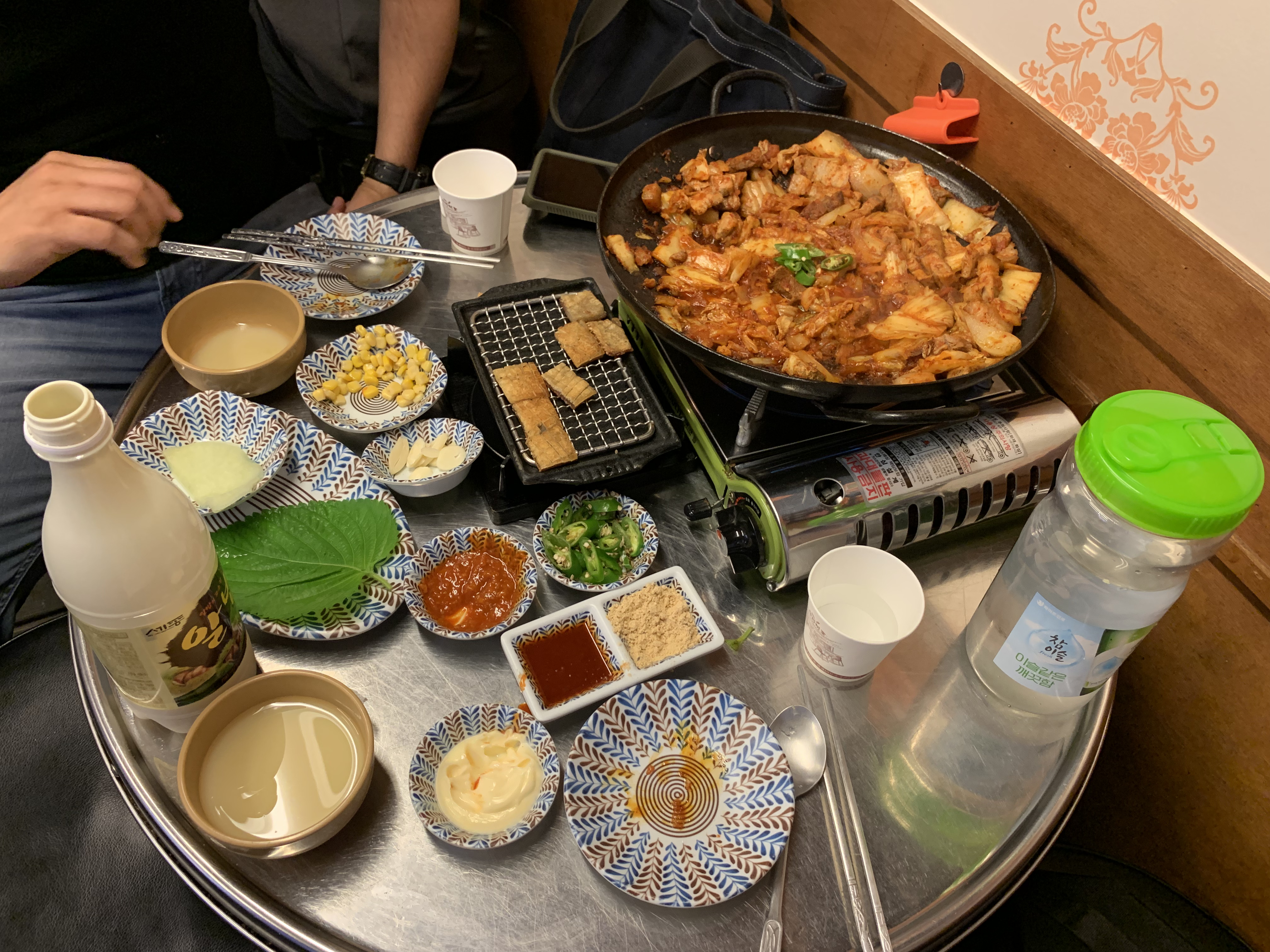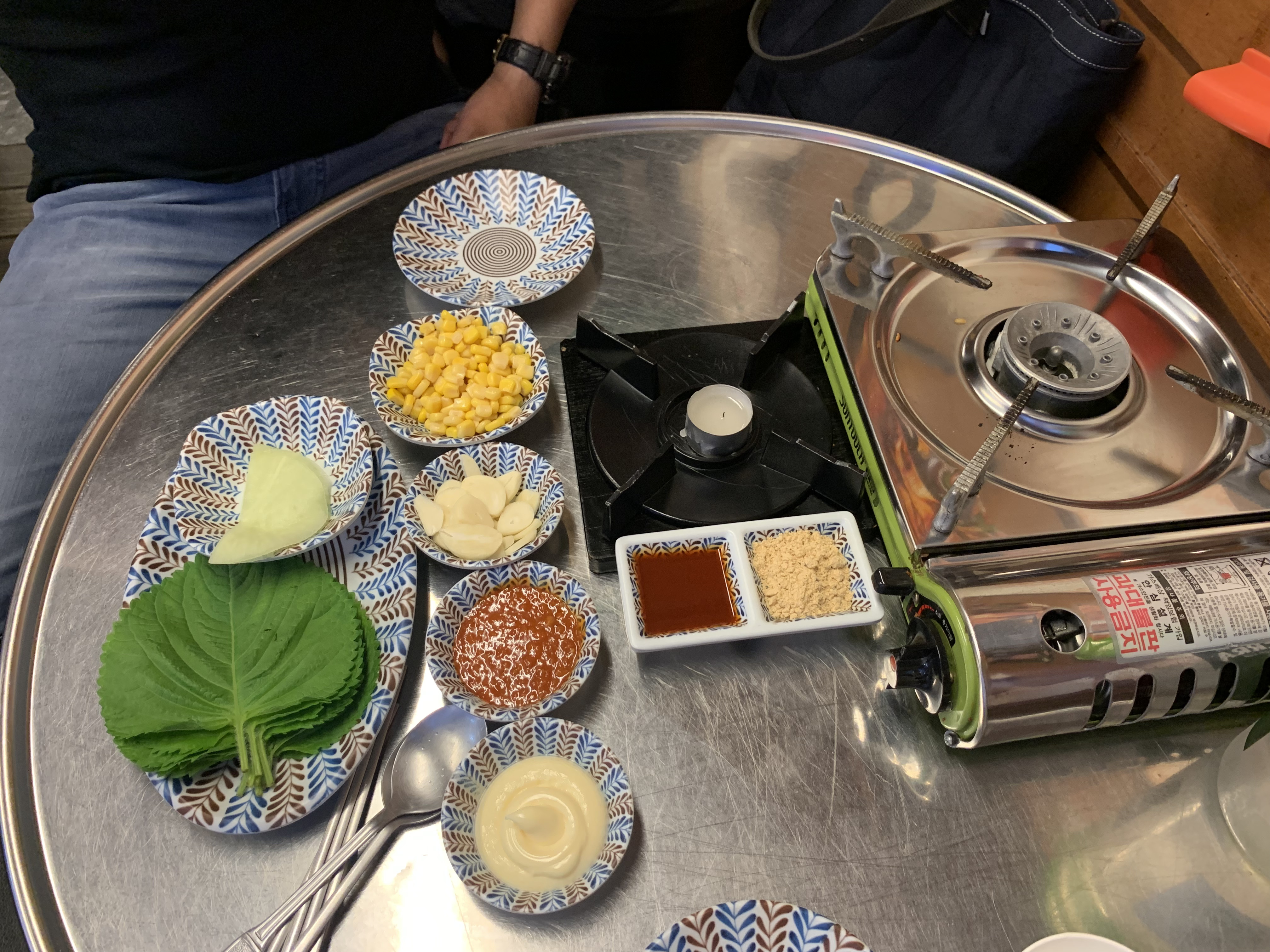 껍데기도 세팅되었습니다. 쫄깃쫄깃 단백하고 맛있습니다. 양은 많지 않지만 돼지김치구이랑 궁합이 아주 잘 맞는거 같습니다.