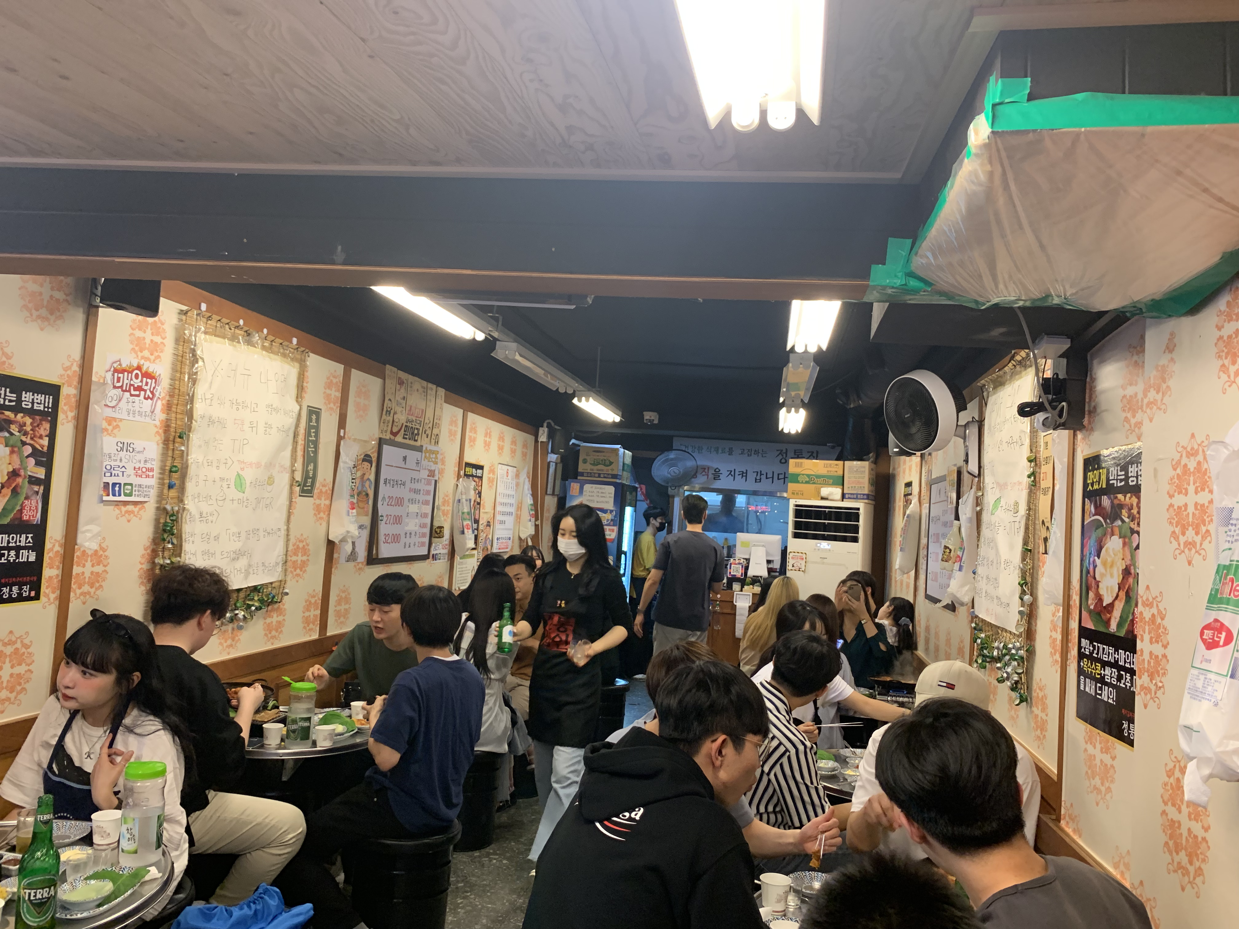 제가 입구쪽 끝자리에 앉았는데 이렇게 모든 테이블이 가득차있습니다.