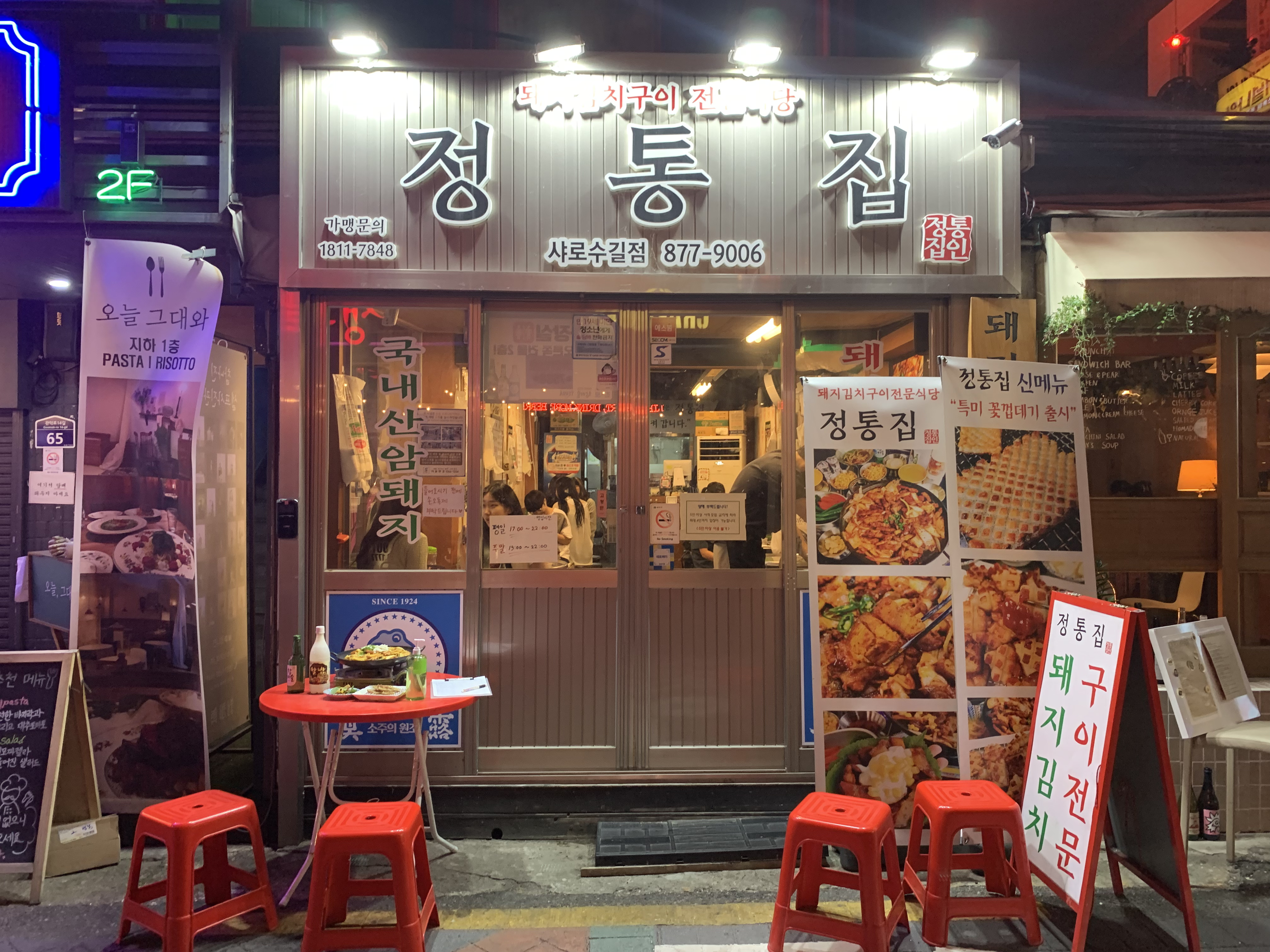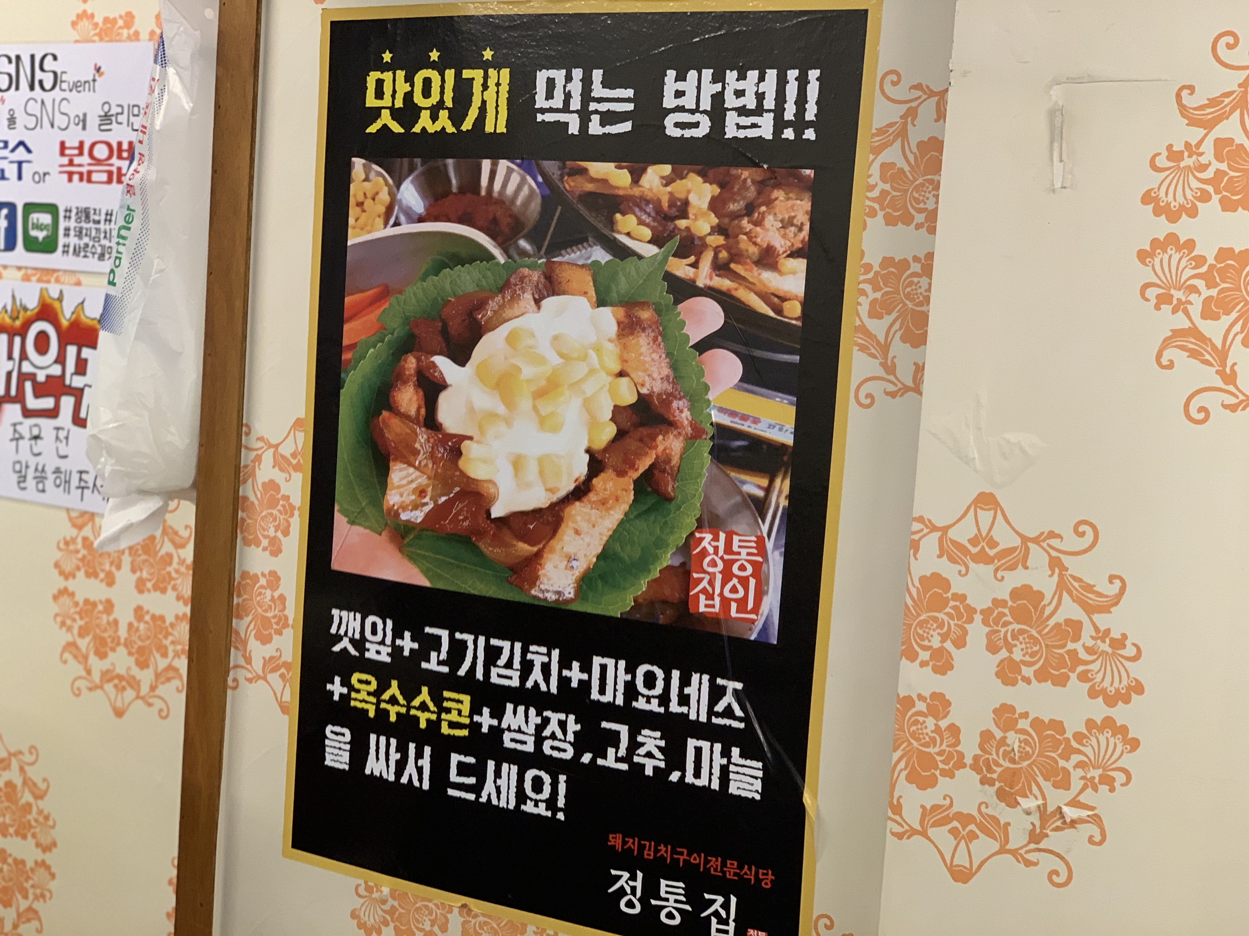 돼지김치구이 전문식당 "정통집"입니다. 간판을 보니 체인인거 같습니다. 빈테이블 없어 살짝 웨이팅이 있었습니다.