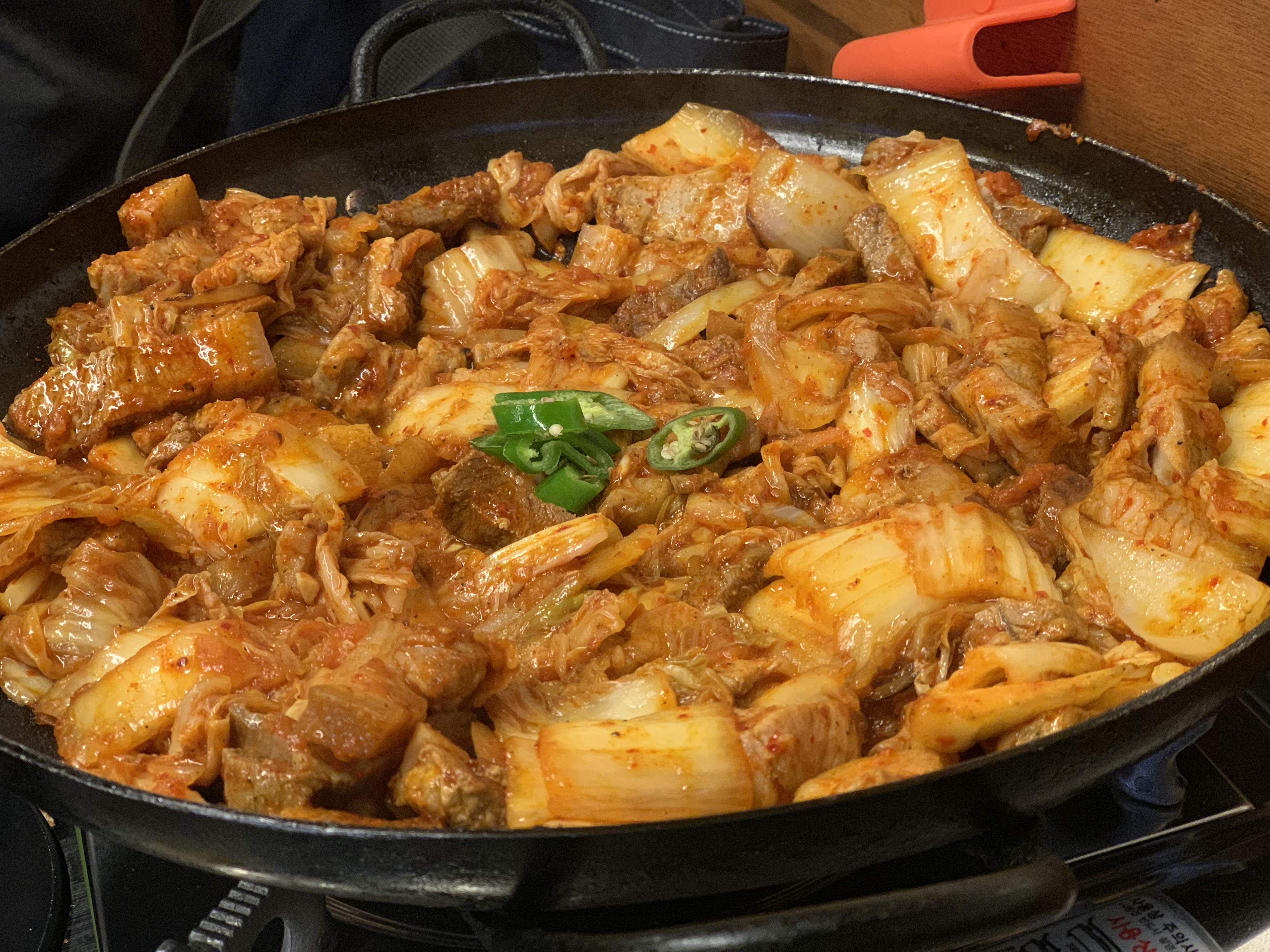 짜잔~ 단일메뉴 돼지김치구이가 드디어 나왔습니다. 아~ 비주얼이 아주 끝내줍니다. 한국사람이면 이 음식을 싫어할 수가 있을까요?