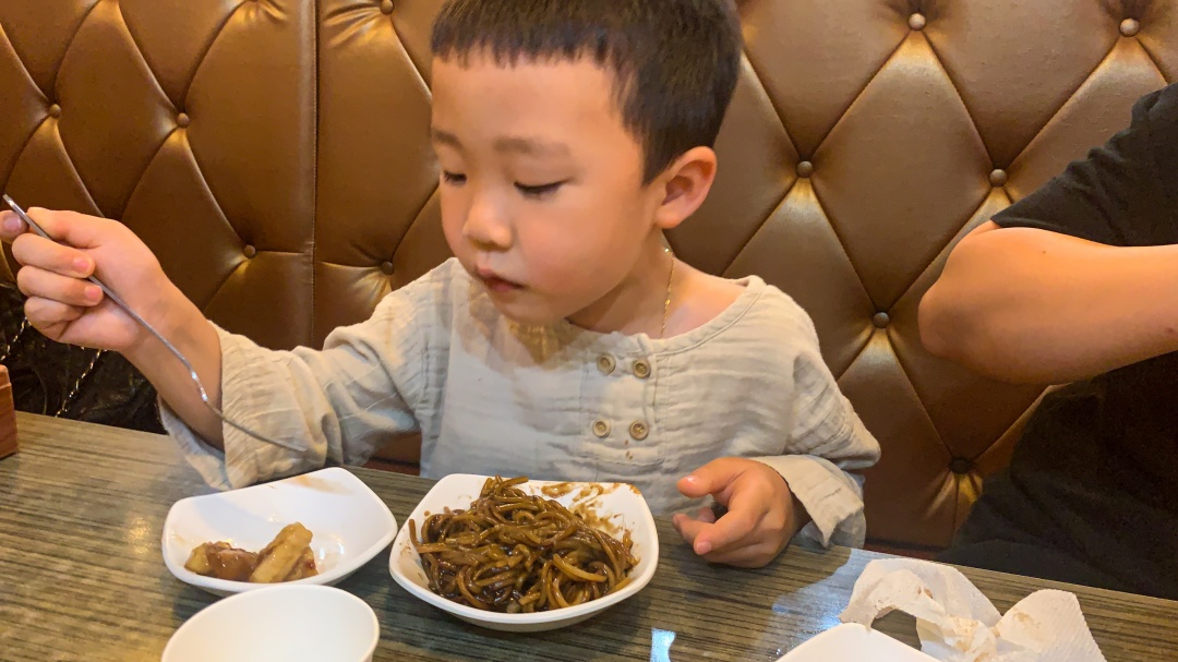 우리집 막둥이 짜장면과 탕수육을 먹고 있습니다.