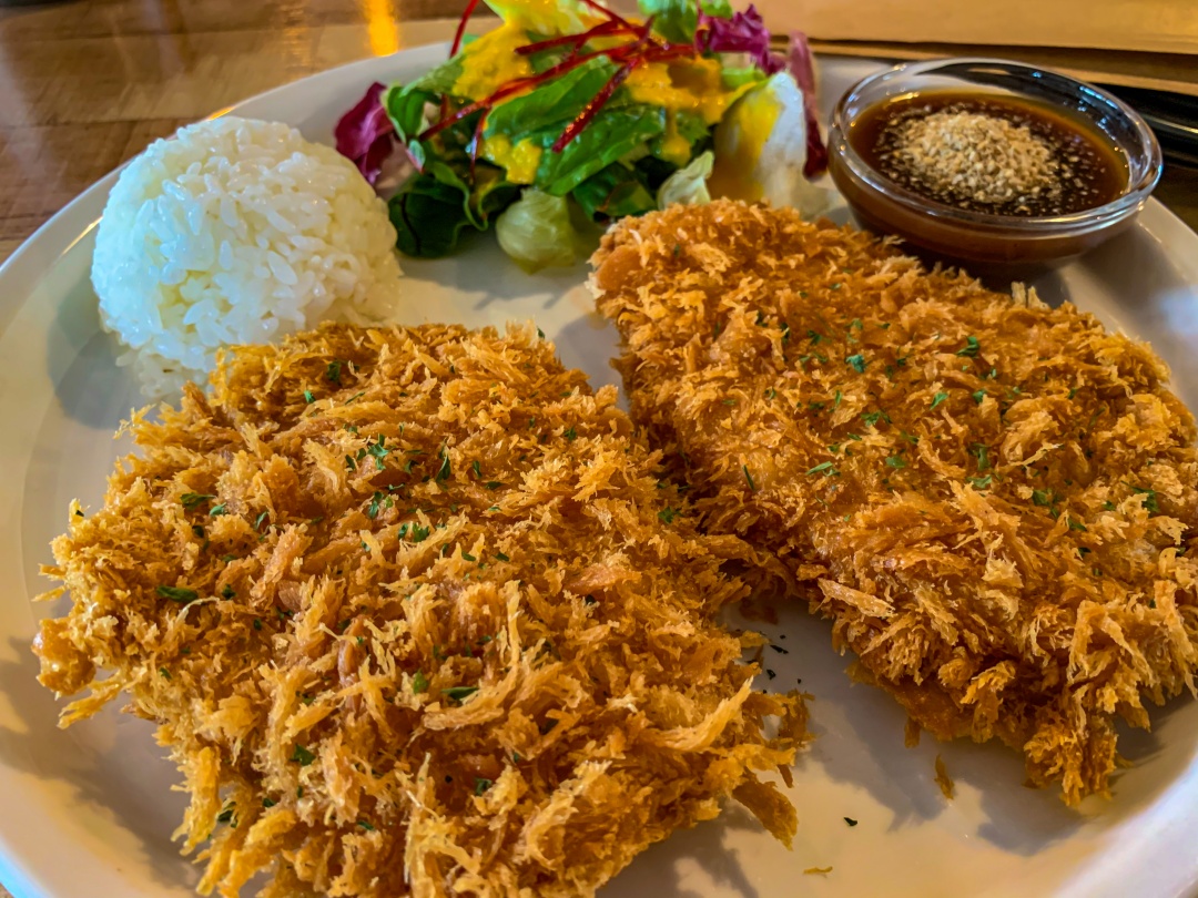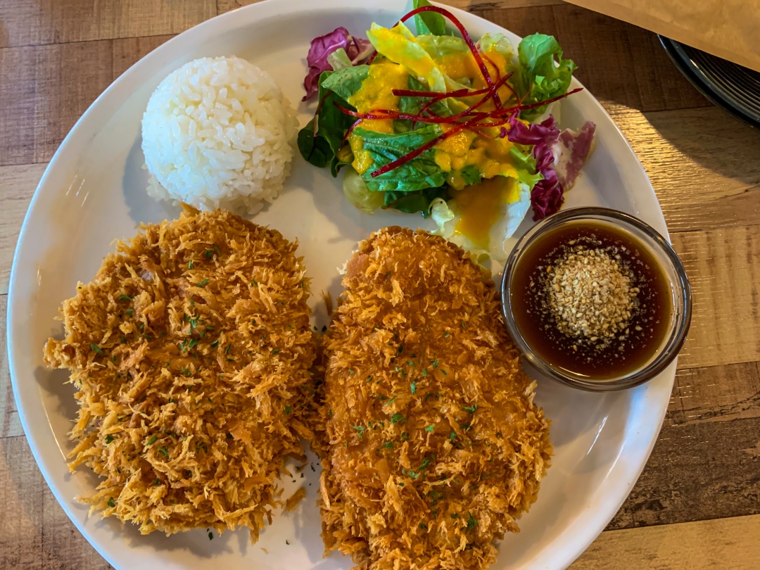제가 주문한 수제돈까스입니다. 두 덩어리인데 생각보다 양이 푸짐하더라구요. 빵꽃이 아주 이쁘게 피어있습니다. 바삭바삭하니 아주 맛있는 돈까스였습니다.