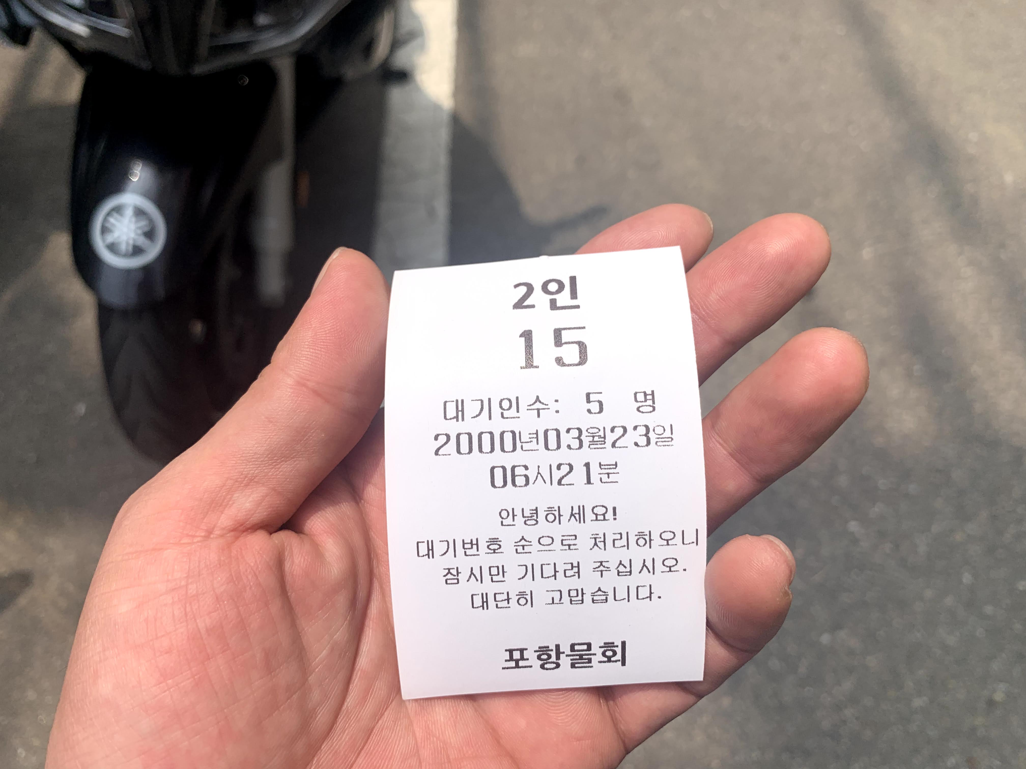 대기표를 받았는데 날짜와 시간은 맞지 않습니다. 자리가 나면 일하시는 분들이 나와서 번호를 크게 불러주십니다. 저희 앞에 4팀이 있었는데 확실히 술을 마시거나 밥을 먹으면서 이야기를 하는 분위기가 아니기 때문에 자리회전이 굉장히 빠르더라구요.