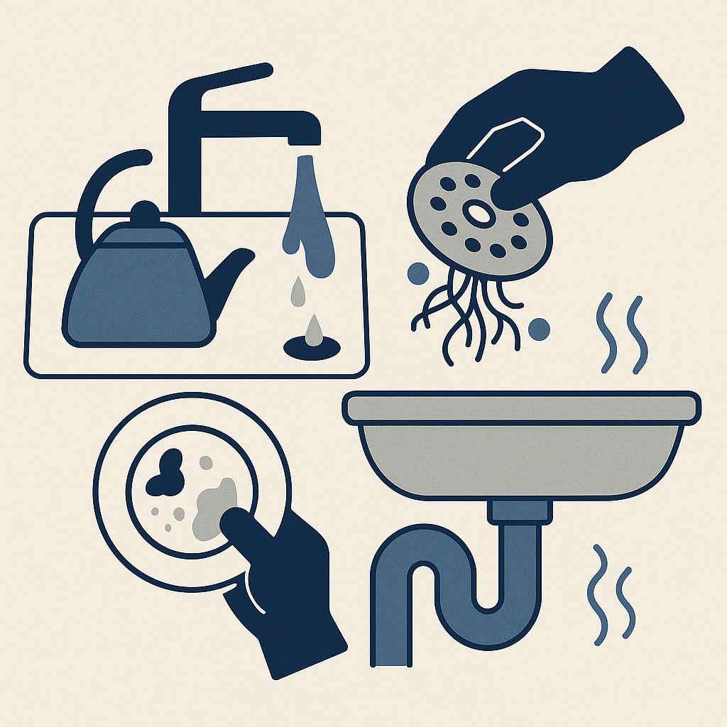 이를 예방하는 가장 간단한 방법이 바로 끓는 물을 활용한 하수구 청소입니다. 일주일에 한 번 설거지를 마친 뒤, 약 65도 정도의 뜨거운 물을 싱크대 하수구에 천천히 부어주면 배관에 달라붙은 기름때가 녹으면서 내려가 막힘 예방에 도움이 됩니다. 단, PVC 배관은 고온에 약할 수 있으므로 팔팔 끓는 물보다는 약간 식힌 뜨거운 물을 사용하는 것이 안전합니다. 이 습관은 단 1~2분이면 가능하지만, 장기적으로 하수구 막힘 예방 효과는 상당히 큽니다.