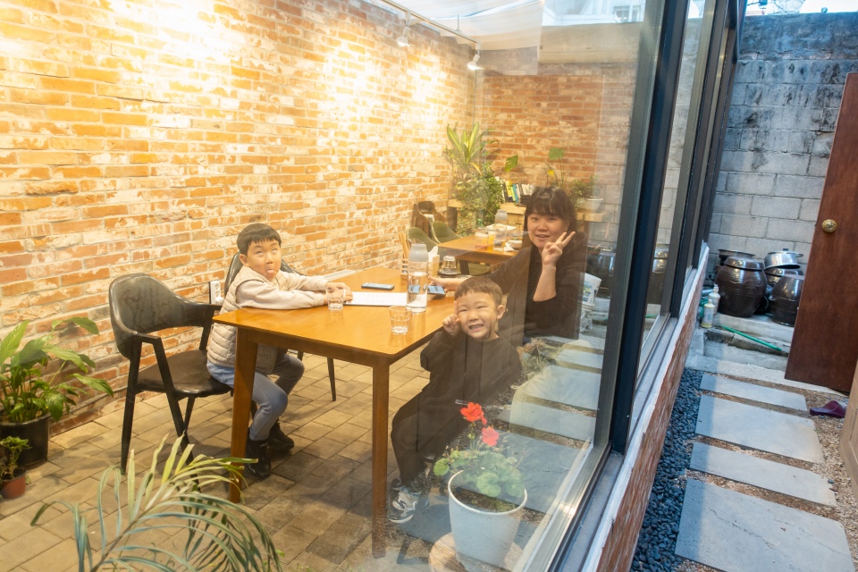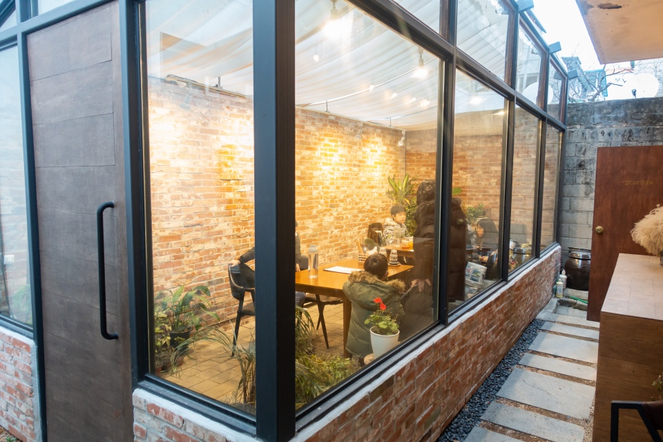 저희보다 먼저 왔던 분들이 나가고 외부공간을 한번 찍어보았습니다. 분위기가 아주 괜찮죠? 따뜻한 느낌의 공간에서 우리가족끼리만 식사를 준비합니다. 통유리였는데도 따뜻했습니다.