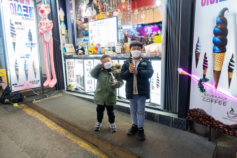 밥 맛있게 먹고 구경시장에 들어가 아이들은 후식으로 아이스크림~ 주인장분이 아주 친절하시더라구요.